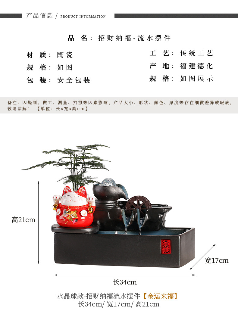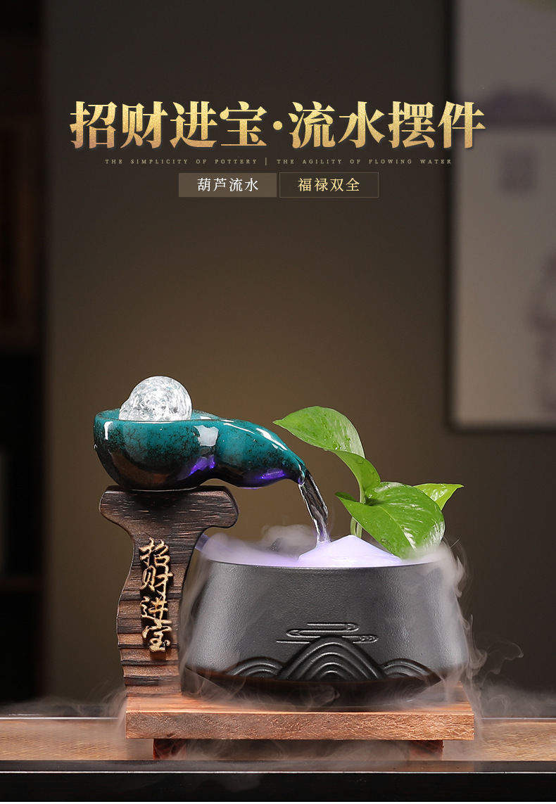 사무실 프런트 데스크 행운의 물 분수 장식품 순환 물 가습 간단한 거실 입구 돈 데스크탑 선물스토어 가기