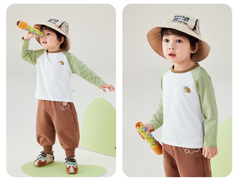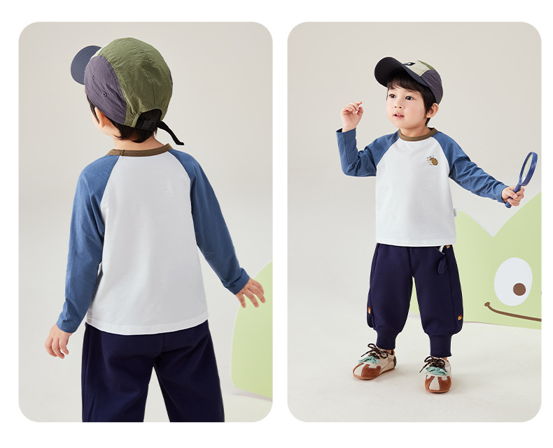 [7A 항균] 아동 티셔츠 긴팔 8 아기 가을 패션 의류 소년 대비 색상 유행 가을 탑 소녀스토어 가기