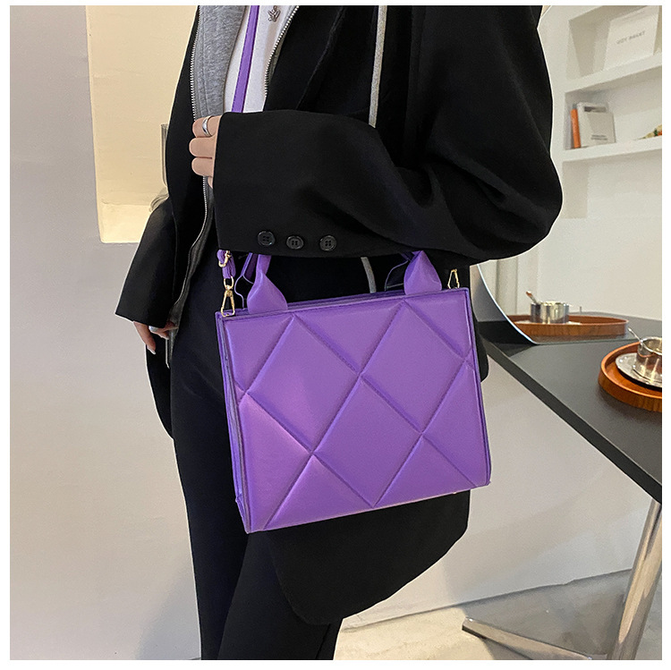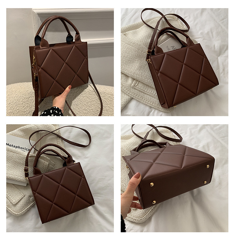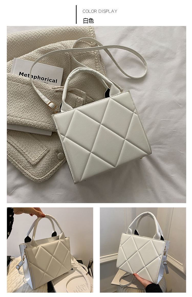 유럽과 미국의 심플한 대용량 토트 백 핸드백 여성 틈새 디자인 트렌디 패션 마름모 가방 작은 사각형 가방