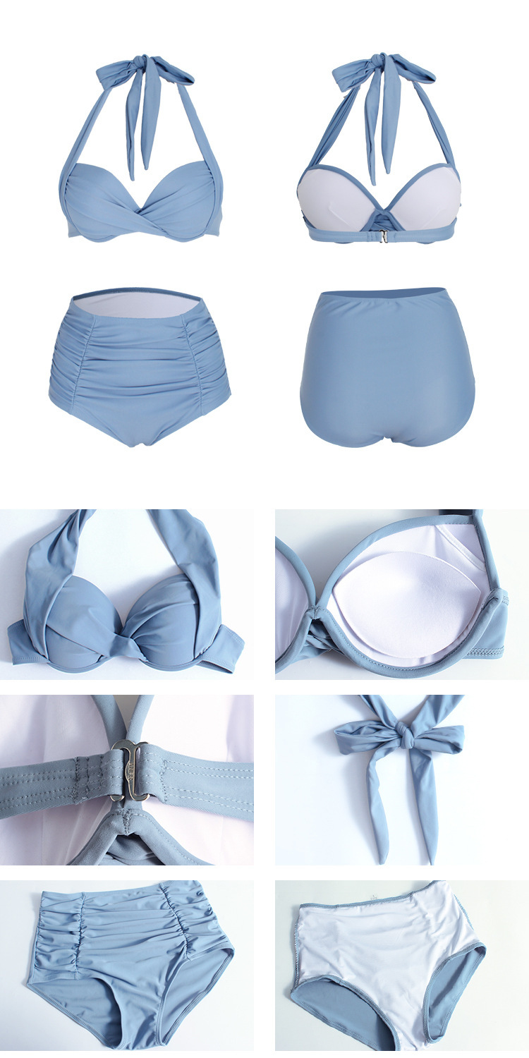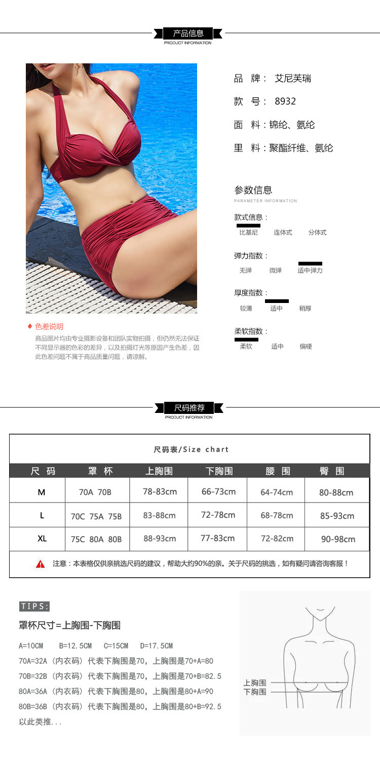 2020年韩国新品时尚性感分体高腰遮肚显瘦钢托三角女泳衣8932