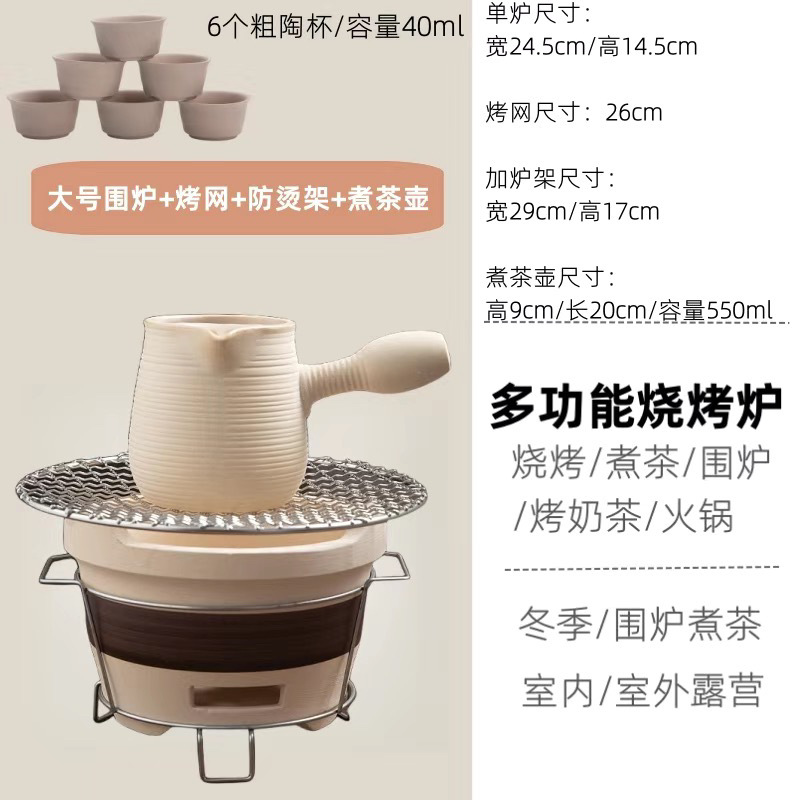• 대형 숯불 난로 + 그릴 그리드 + 난로 선반 + 원롱 찻주전자 + 석기 컵 6개