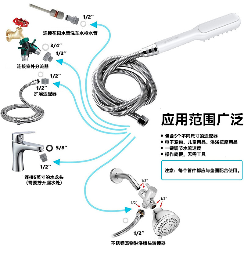 아마존의 베스트셀러 새로운 애완동물 목욕 가압 샤워 스프레이 마사지 및 세면용 이중 목적 개 샤워 도구스토어 가기