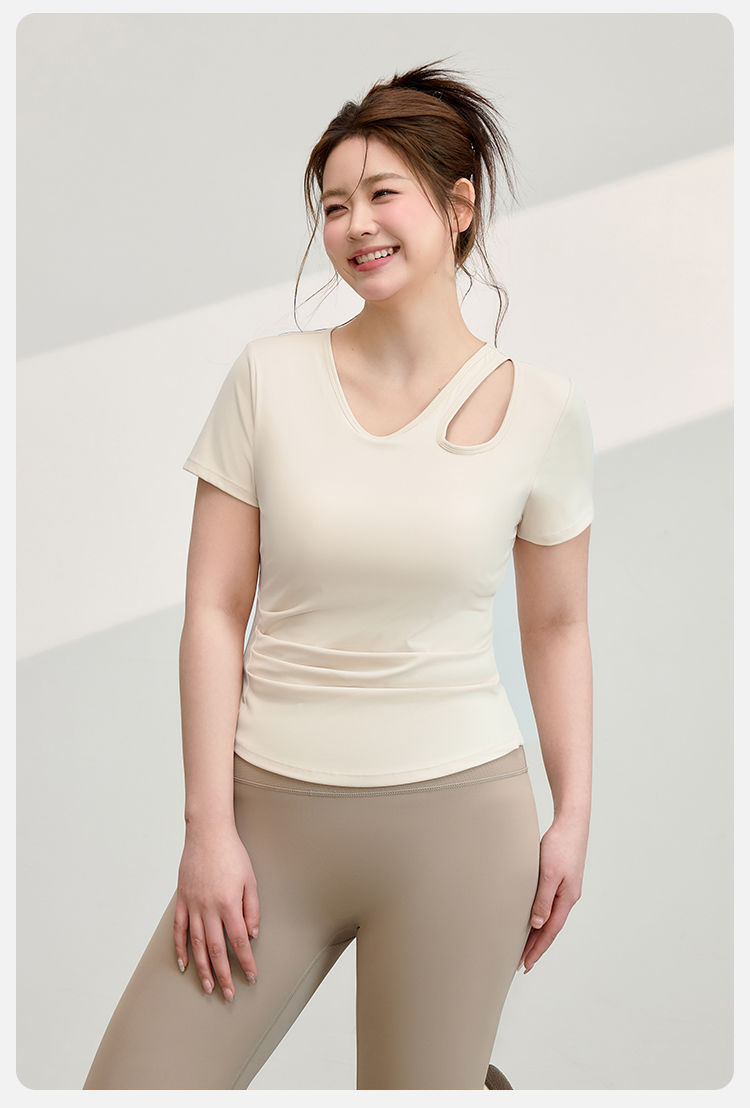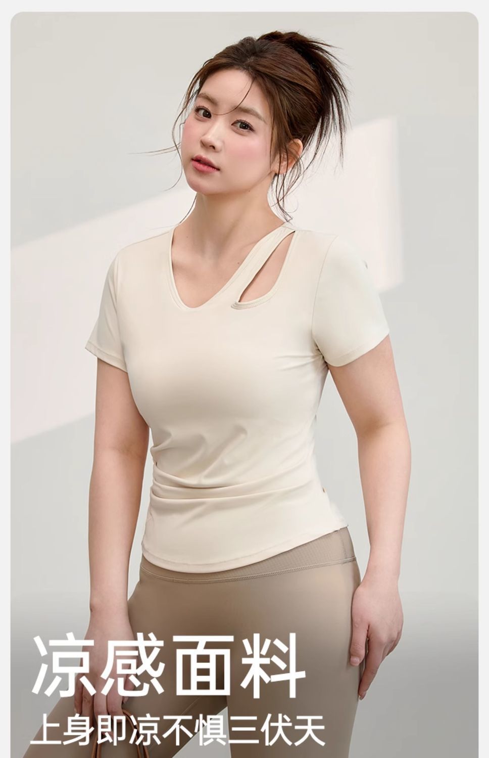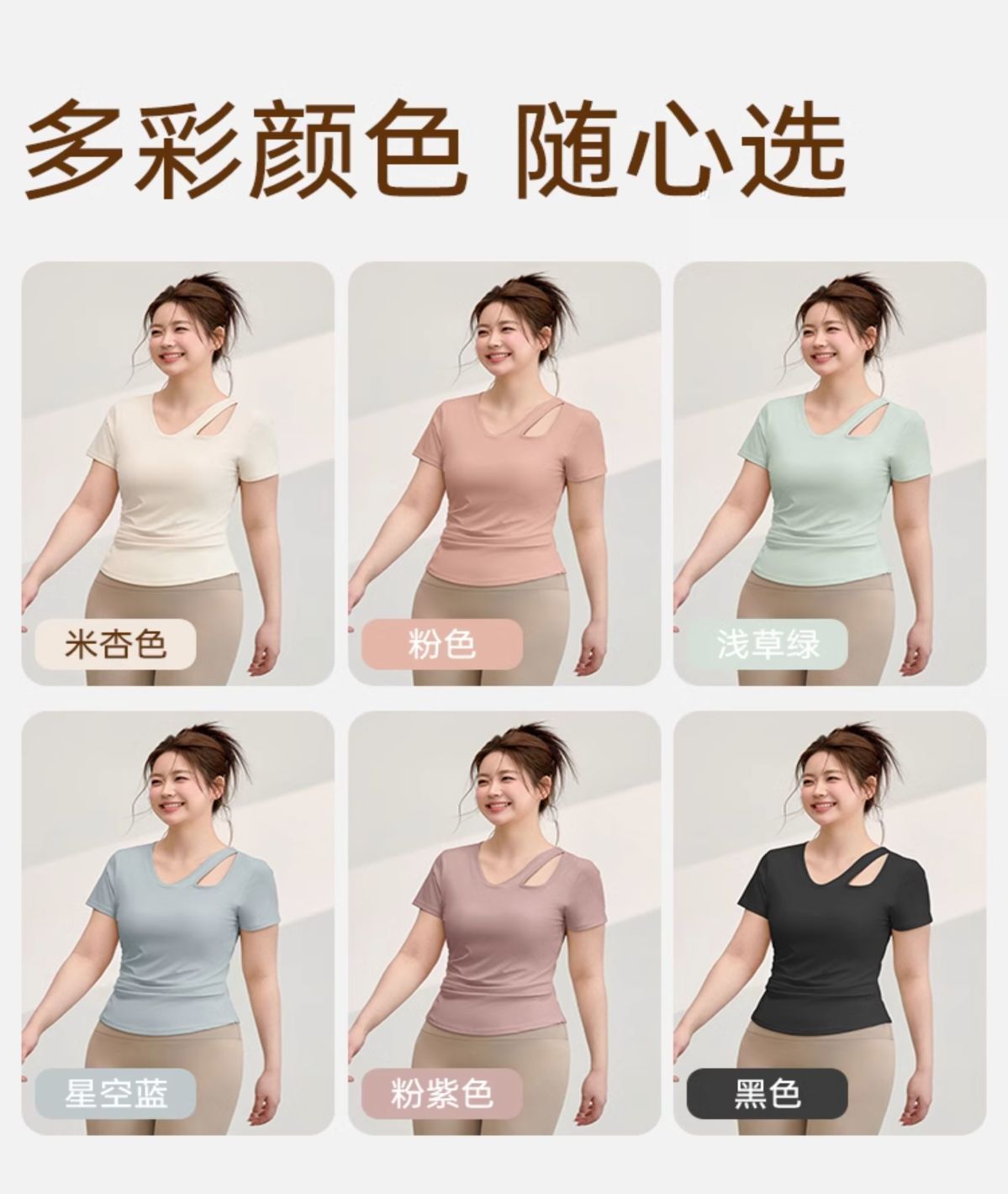 여름 새 버전 요가복 러닝 피트니스 스포츠 슬리밍 플러스 사이즈 티셔츠 뚱뚱한 mm 필라테스 여성용 속건성 의류