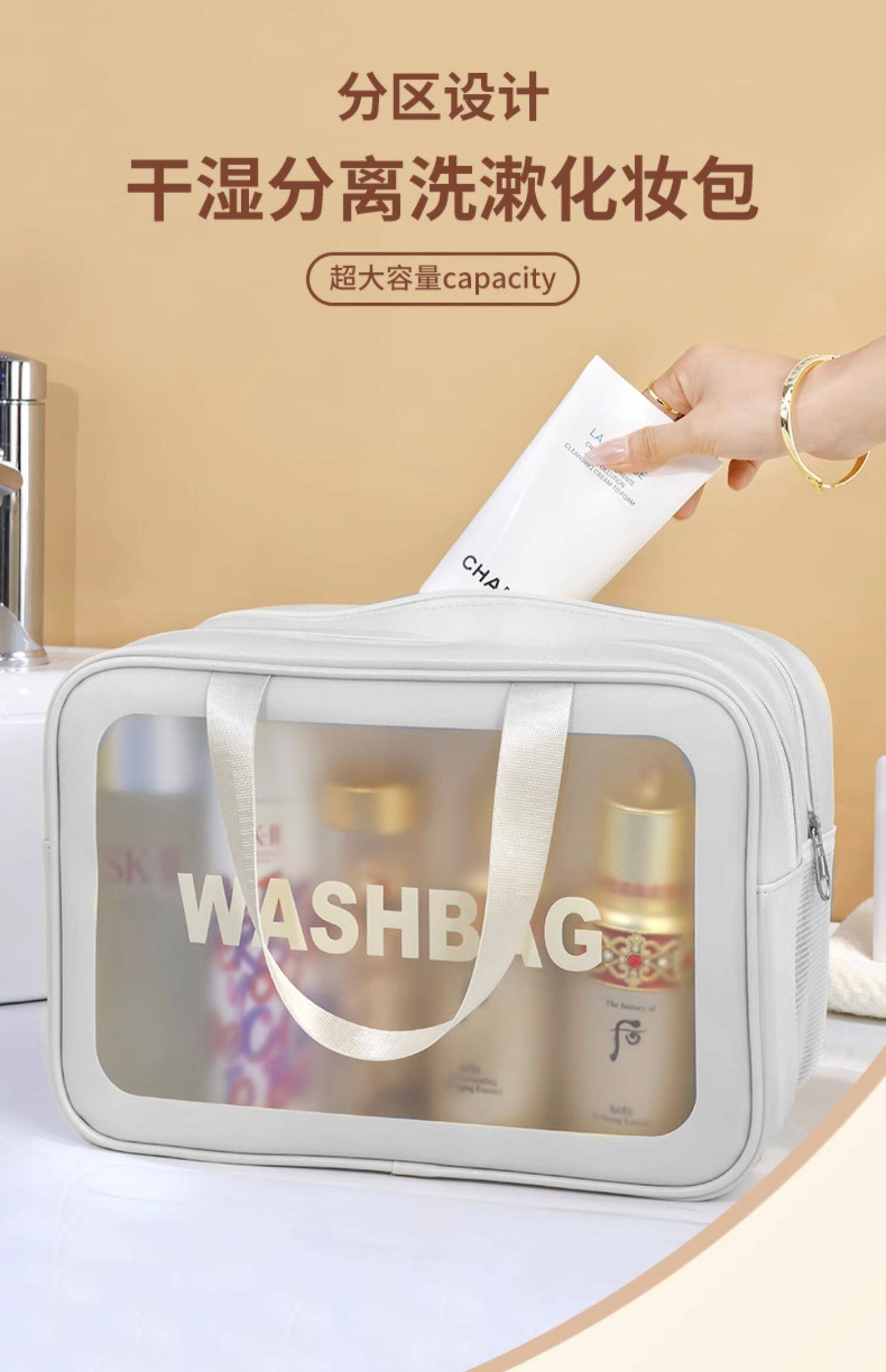 2025 스킨케어 화장품 수납 가방 소형 여행용 세면도구 가방 목욕 가방 대용량 화장품 가방 여성용 건식 및 습식 분리형스토어 가기