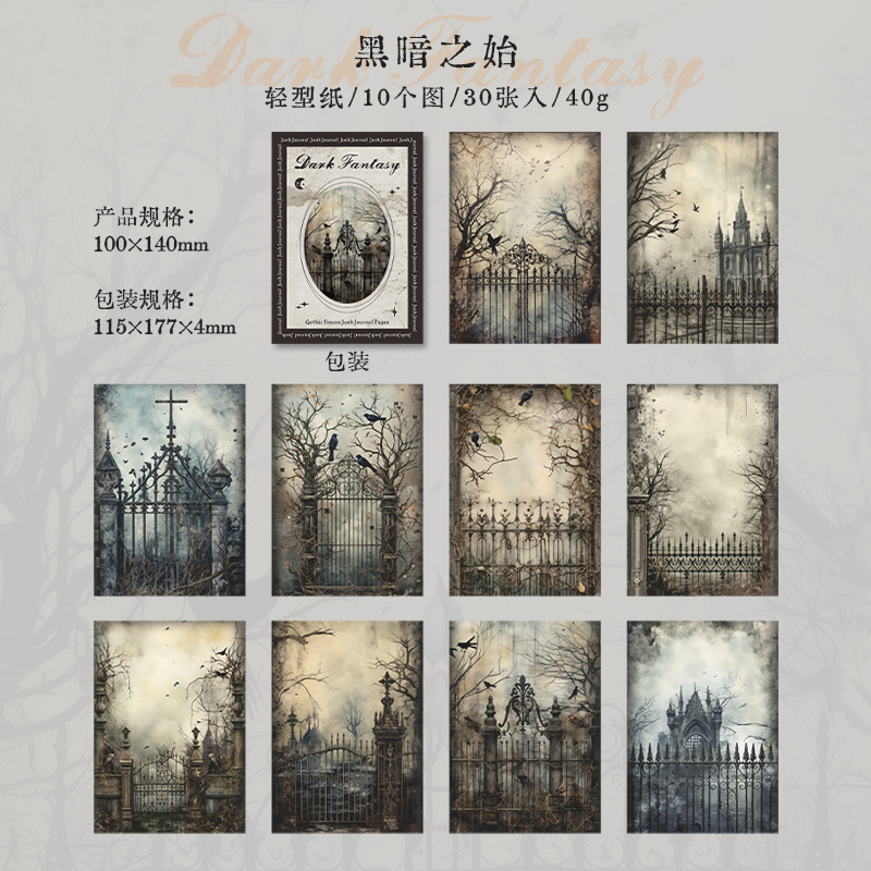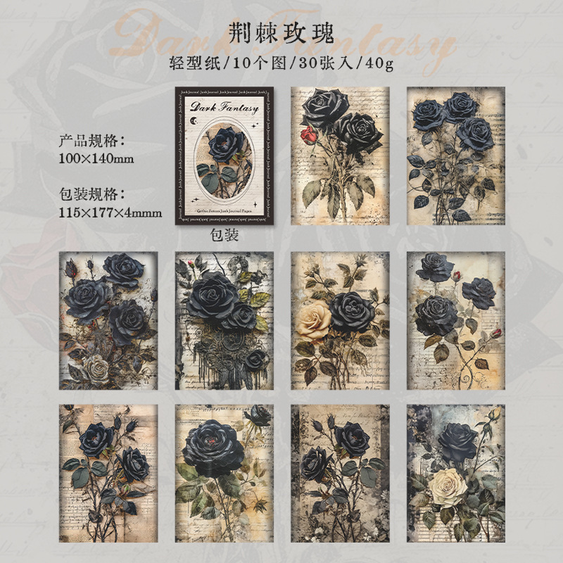 다크 판타지 시리즈 아름다운 날 소재 종이 복고풍 다크 핸드북 DIY 장식 6가지 스타일 30장스토어 가기
