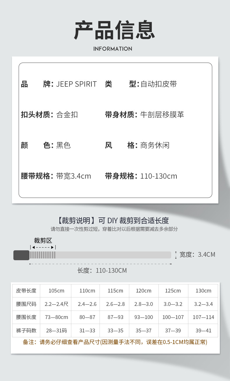 JEEPSPIRIT 남성 벨트 정품 가죽 자동 버클 비즈니스 캐주얼 다용도 바지 벨트 BT0612스토어 가기