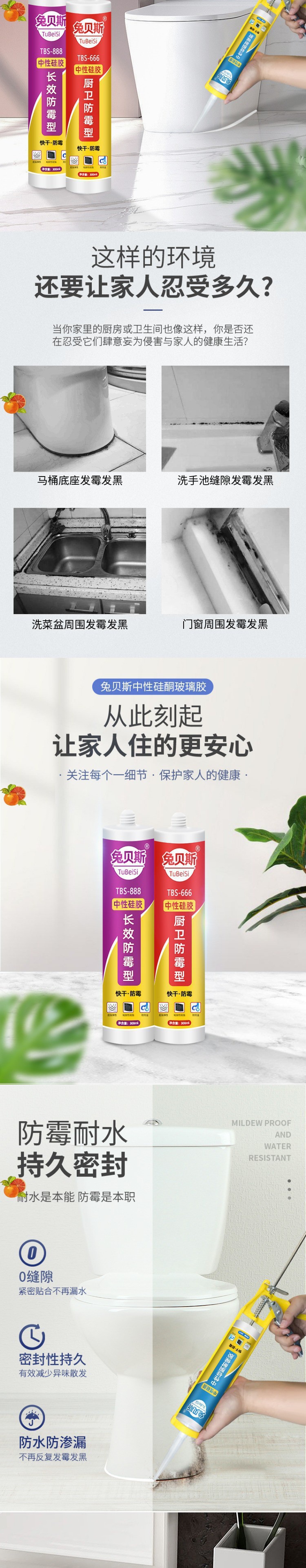 중립 실리콘 내후성 실란트 유리 접착제 방수 주방 및 욕실 무료 도자기 흰색 투명 화장실 식기 세척대