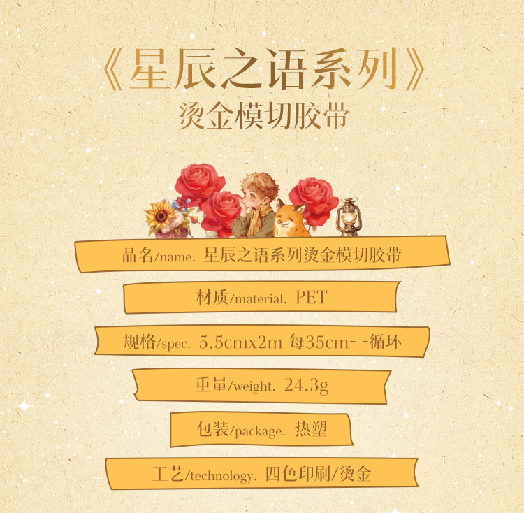 Yuxian 애완 동물 핫 스탬핑 다이 컷 테이프 별의 이야기 왕자 동화 방수 재료 핸드북 카드 diy 콜라주