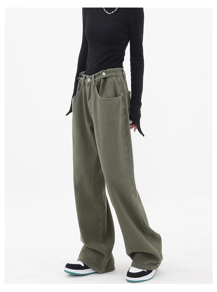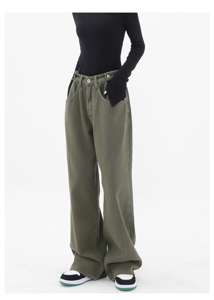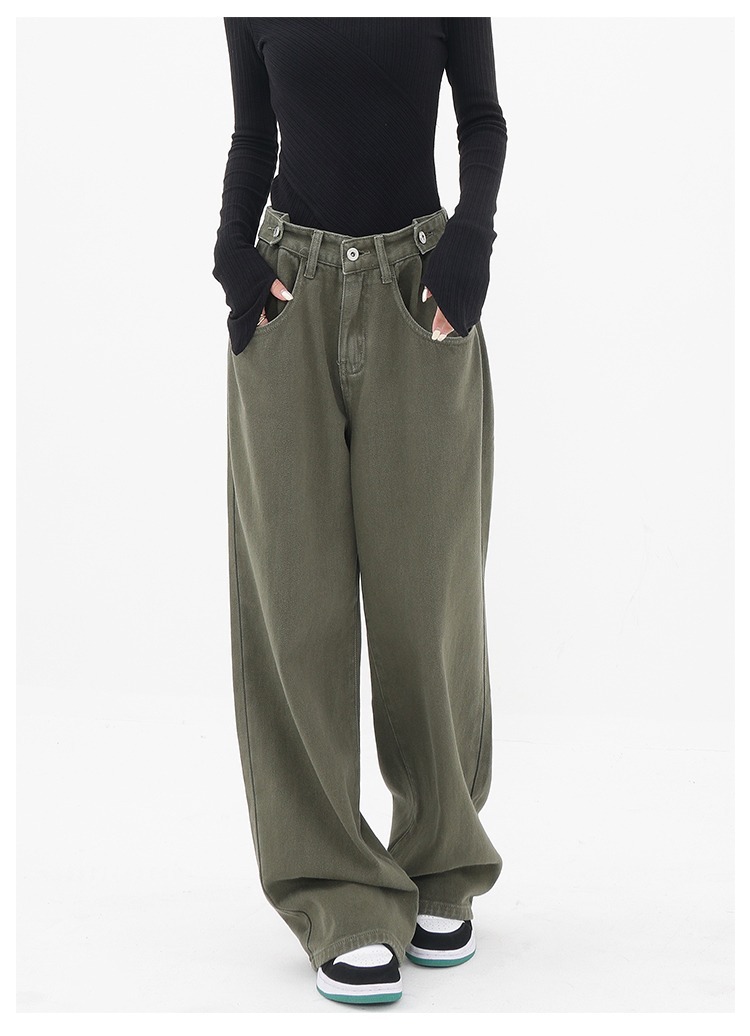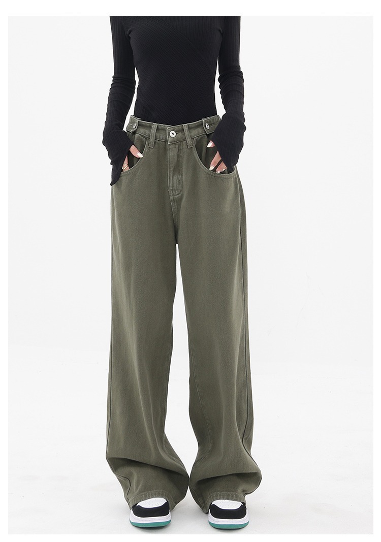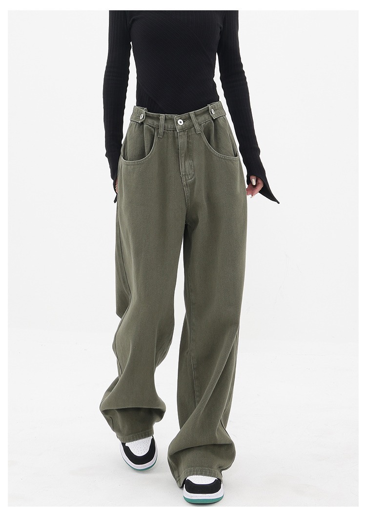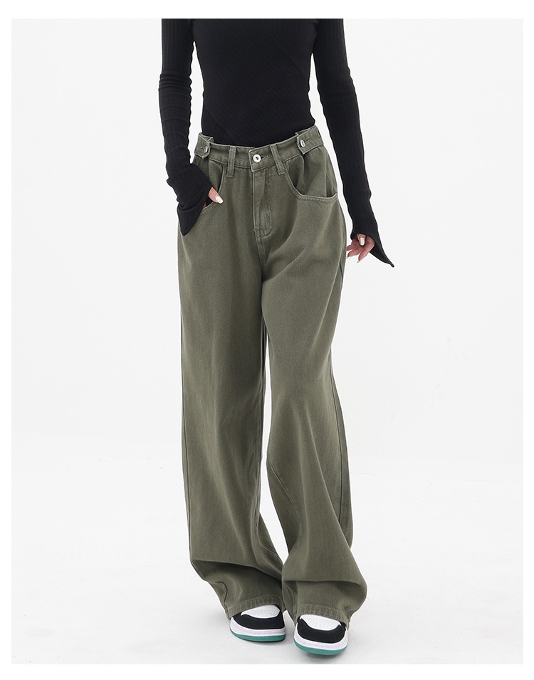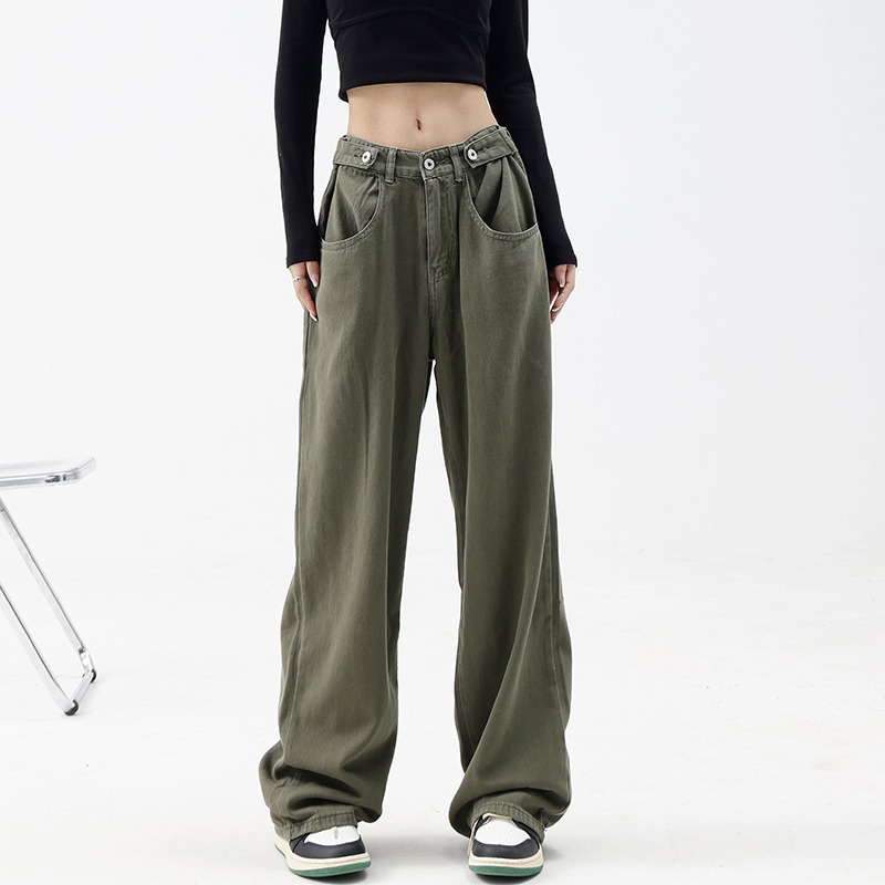 아메리칸 레트로 바이브 팬츠 인 하이 스트리트 패션 브랜드 밀리터리 그린 청바지 남성 루즈 스트레이트 일본 작업복스토어 가기