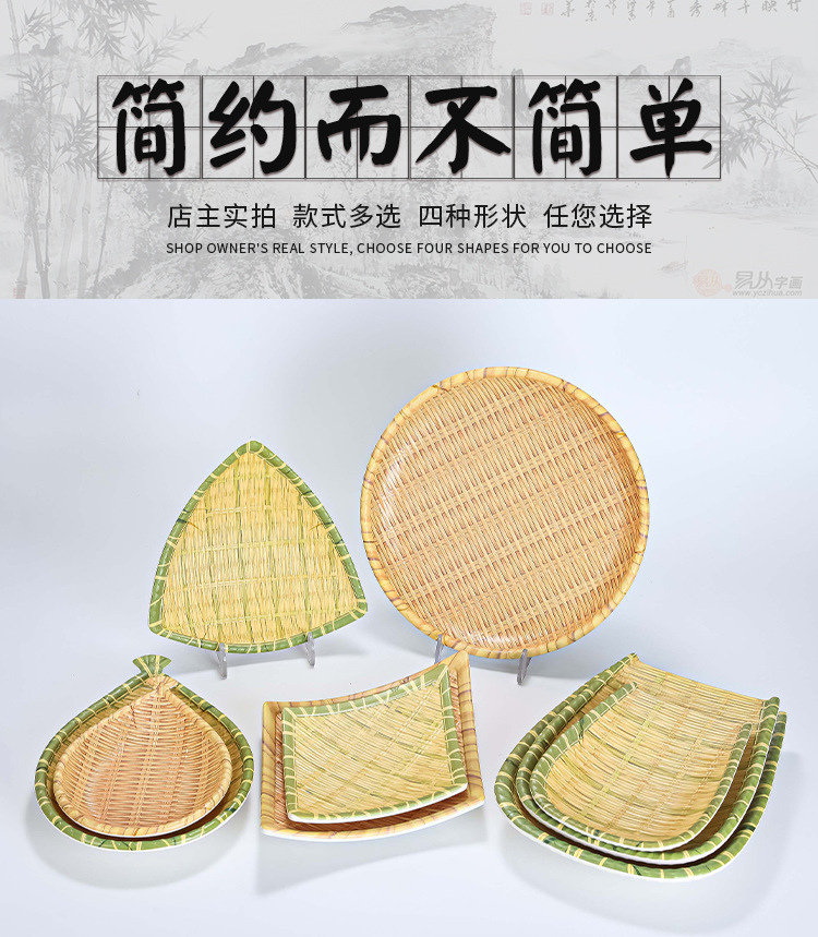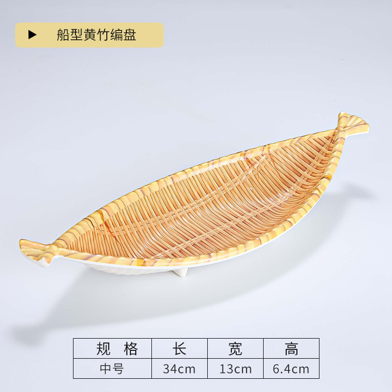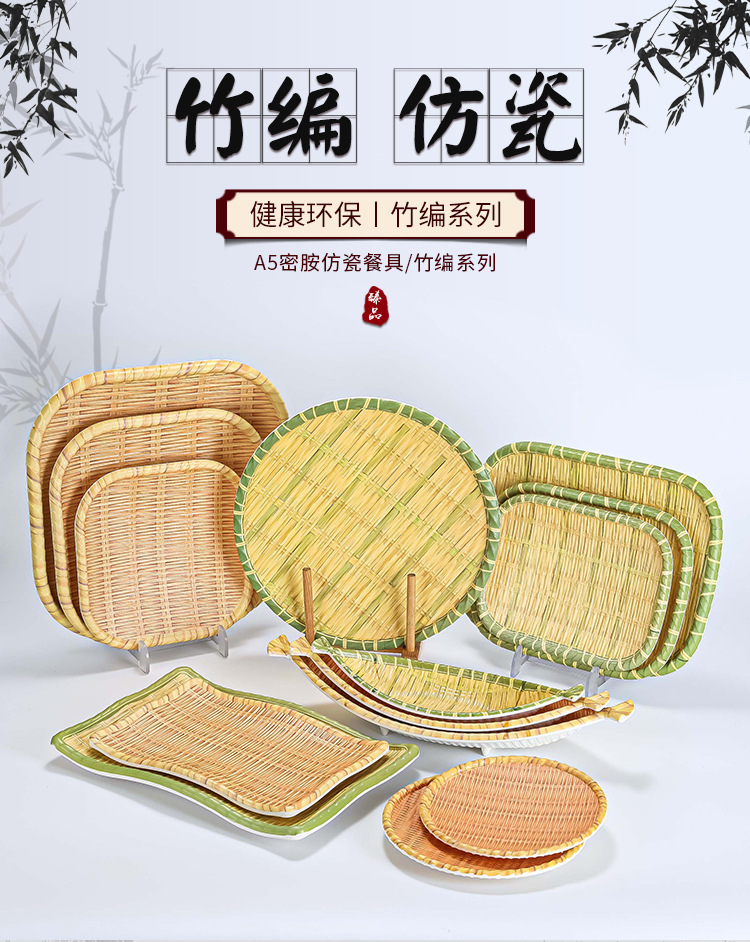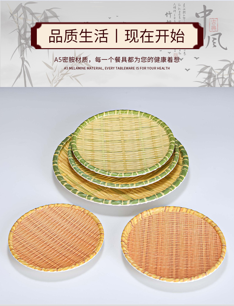모조 대나무 접시, 대형 원형 접시, 전골 식기, 특별한 레스토랑 상업용 바베큐 모조 도자기 접시, 창의적인 스낵 접시