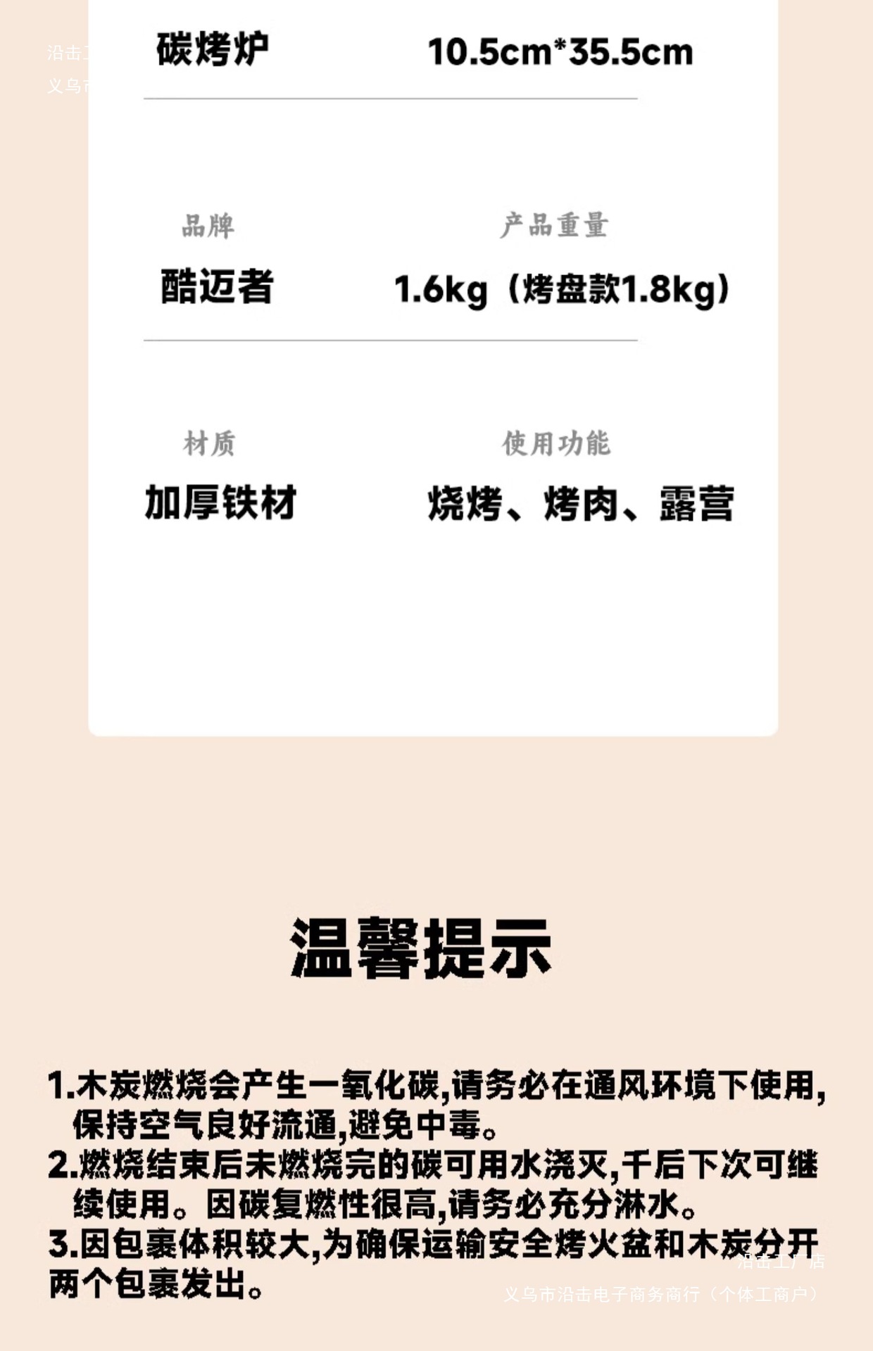 • 업그레이드된 화로 + 그릴 그리드 + 베이킹 팬 + 바베큐 집게 + 옥스포드 천 보관 가방 + 과일 숯 12개 + 측면 손잡이가 있는 500ml 주전자