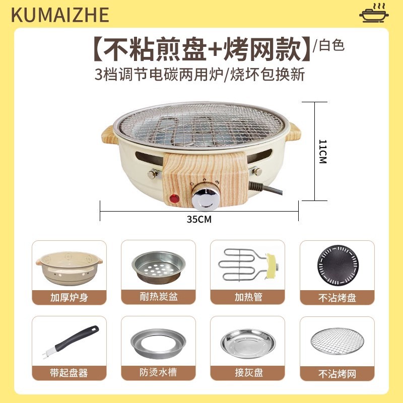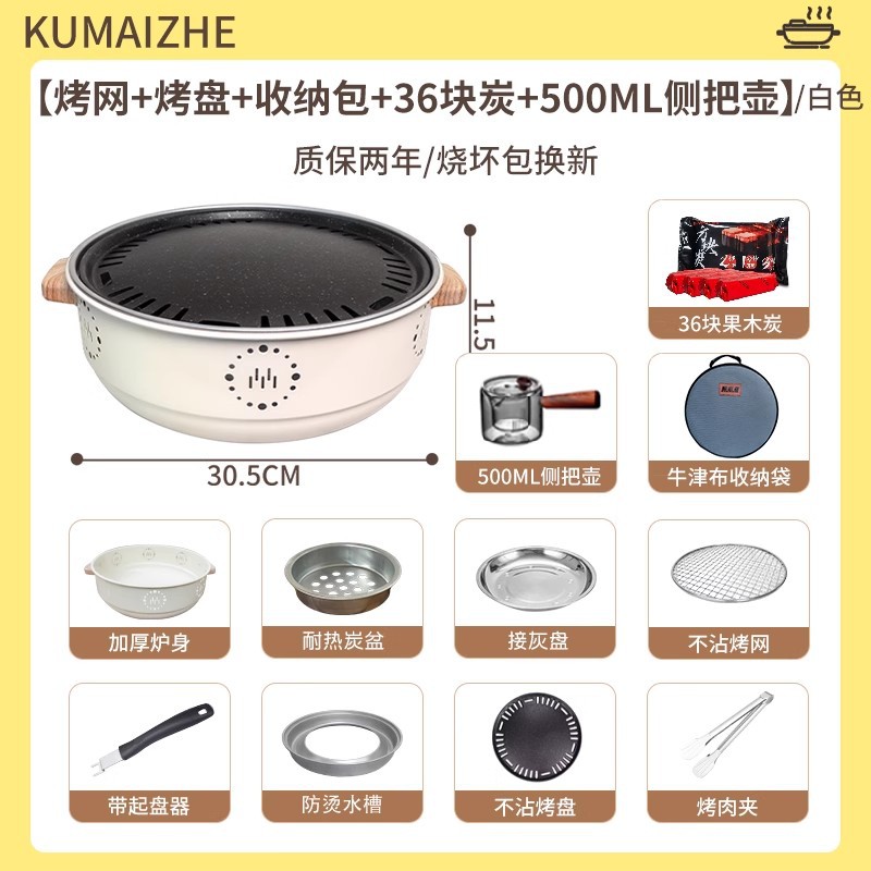 • 전기 및 탄소 이중 목적 크림 화이트 [눌어붙지 않는 프라이팬 + 그릴 그리드 + 보관 가방 + 숯 12개 + 3단계 조절이 가능한 500ML 측면 손잡이 냄비 / 소진 시 교체 보장