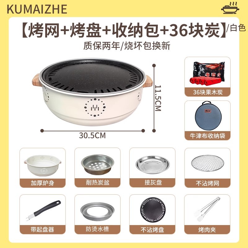 • 업그레이드된 스토브 + 그릴 그리드 + 푸드 클립 + 베이킹 팬 + 보관 가방 + 과일 숯 12개