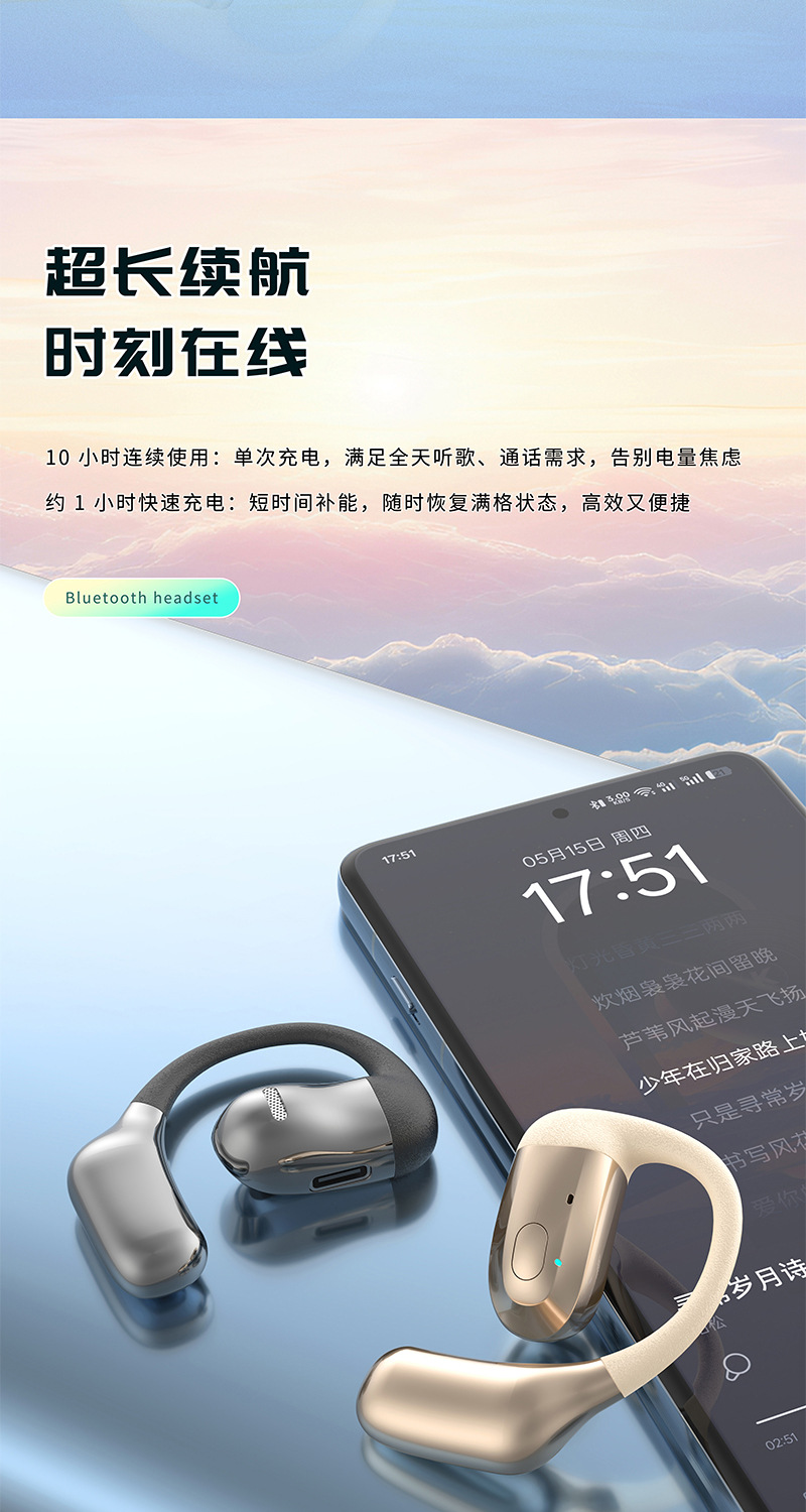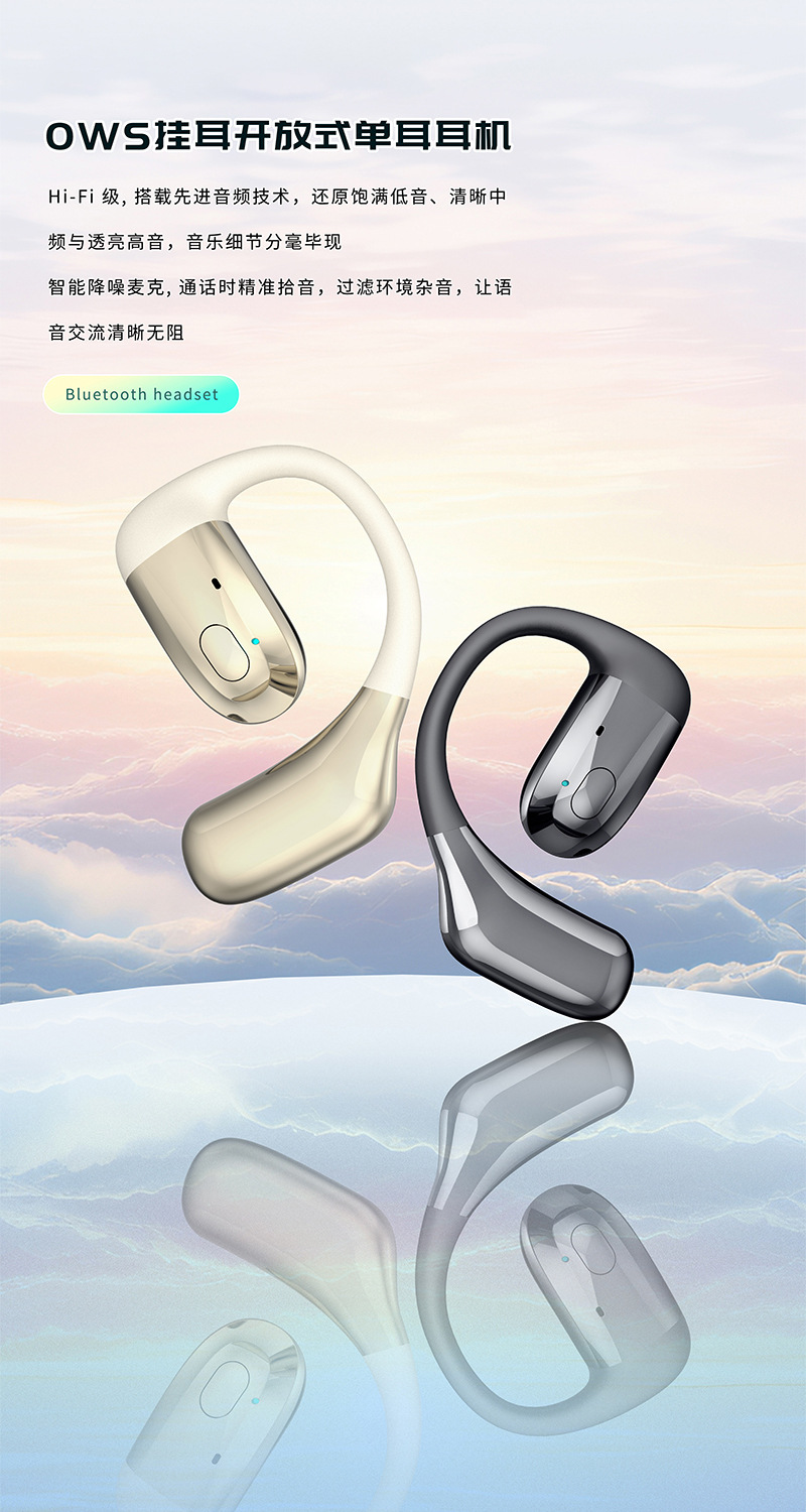 새로운 OWS 귀걸이형 오픈형 싱글 이어 헤드폰, 매우 긴 배터리 수명, Bluetooth 스포츠 헤드폰, 무선 Bluetooth 헤드폰