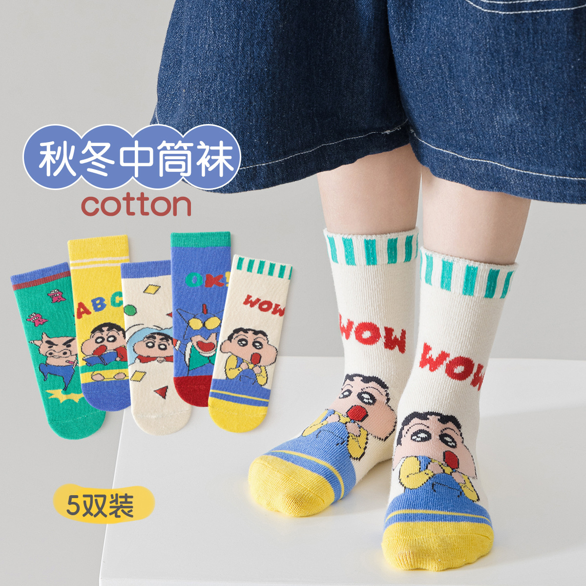 새로운 어린이 양말 가을, 겨울 중간 튜브 양말 큰 어린이 만화 소년과 소녀 양말 봄, 가을 카테고리 A 면 양말 도매스토어 가기