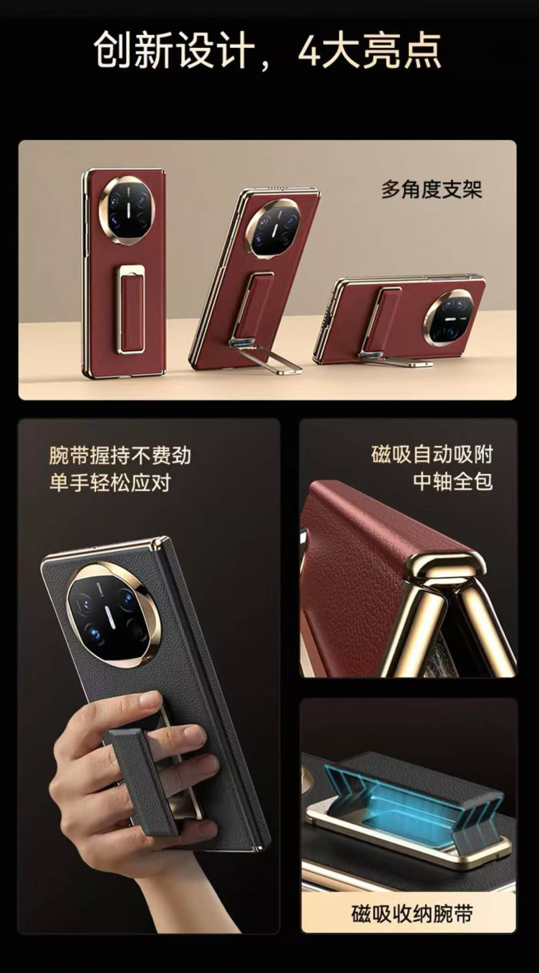 화웨이 MateX5 휴대폰 케이스 전기도금 270에 적합 ° 회전식 스탠드 손목밴드 x6/x3 낮은 중앙축 단일 베이스 케이스 x2