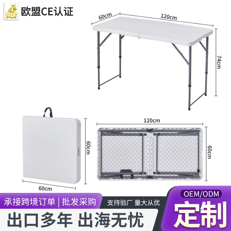 1.2m 블로우 성형 접이식 테이블 휴대용 스트레이트 다리 플라스틱 테이블 학습 테이블 야외 식탁 야간 시장 스톨 접이식 테이블스토어 가기