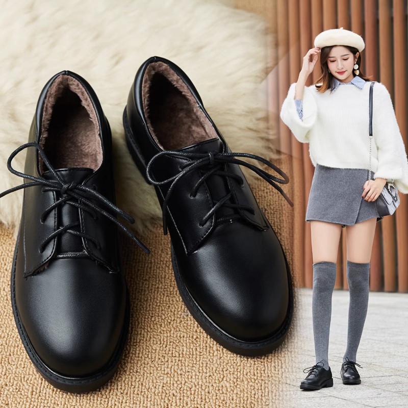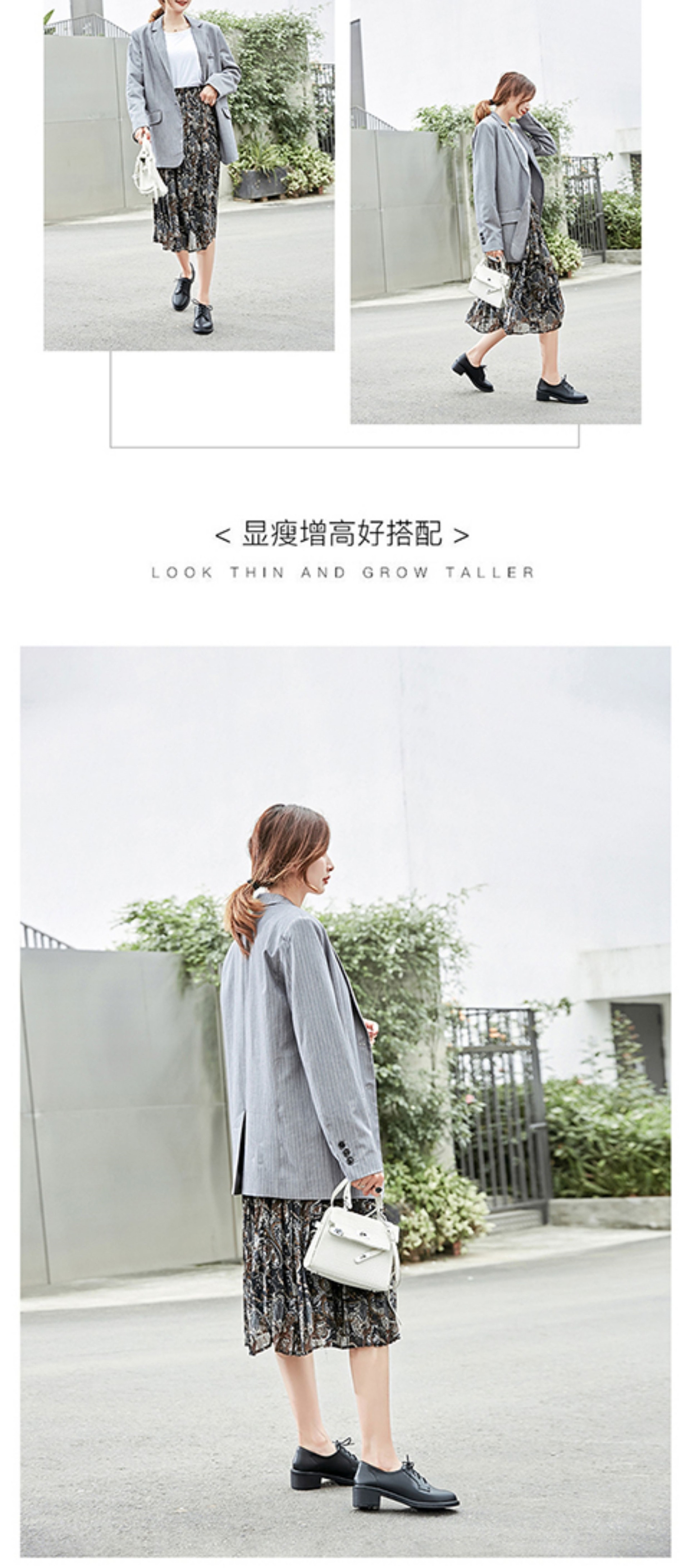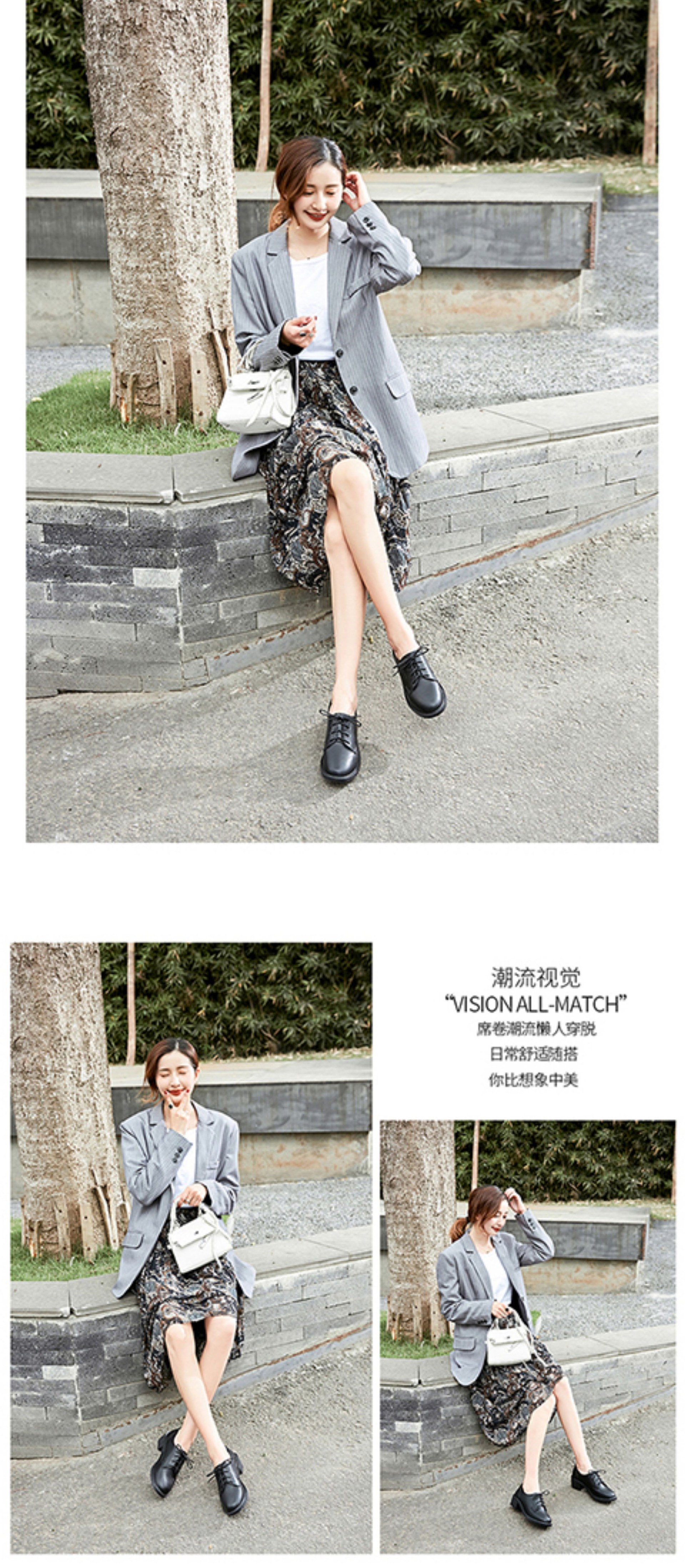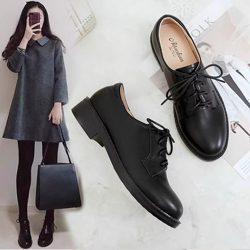 작업화, 여성용 부드러운 밑창, 작업용 편안함, 검은색 하이힐, 영국식 작은 가죽 신발, 봄 가을 통근 여성화, 미드힐 싱글 슈즈스토어 가기