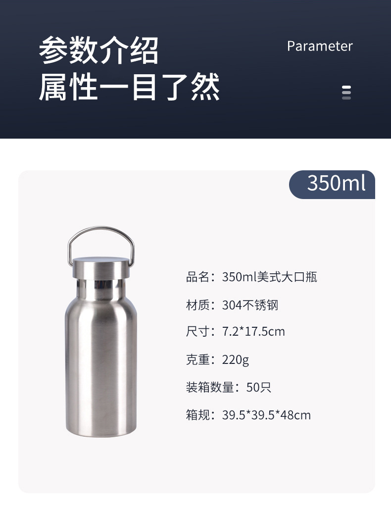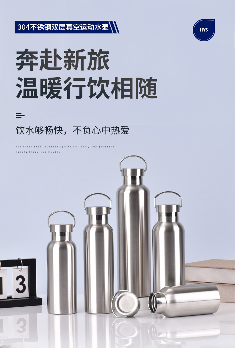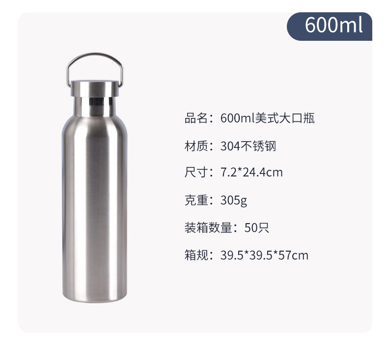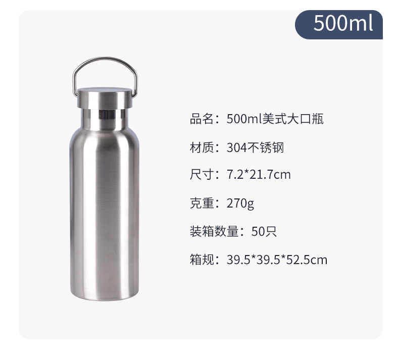 국경 간 304 스테인레스 스틸 미국식 대형 입 스포츠 물병 이중층 진공 절연 컵 야외 휴대용 등산 주전자