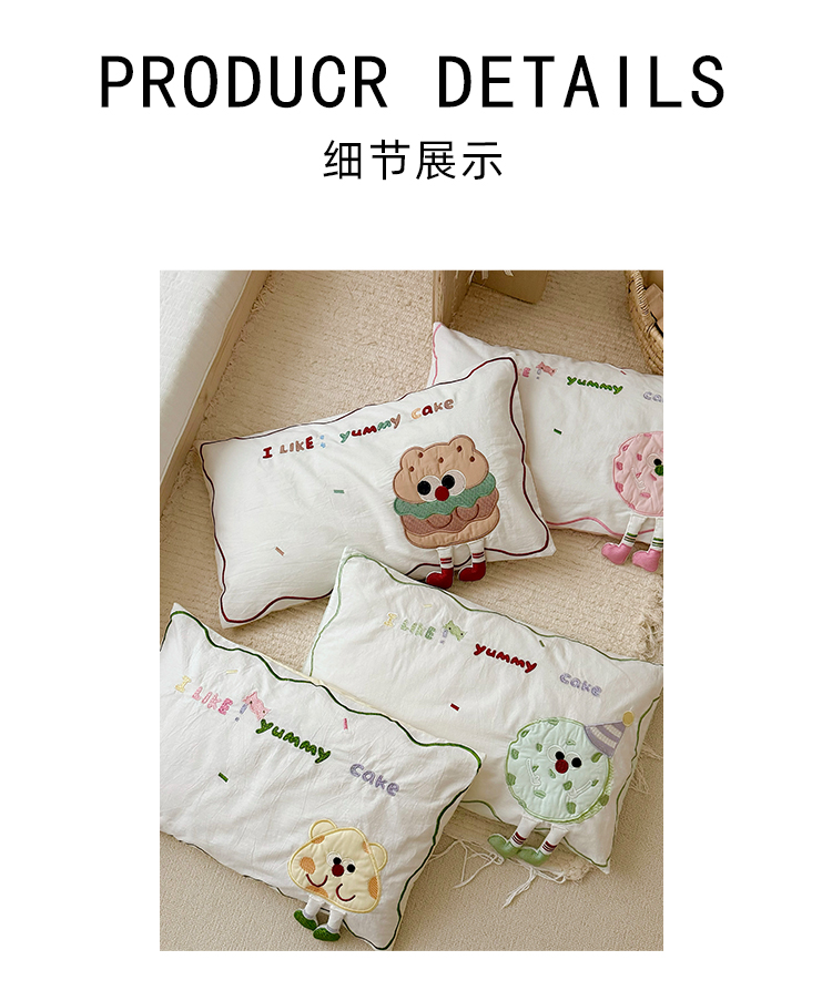 부드럽고 귀여운 입체 장식 베개 커버 싱글 어린이 방 학생 기숙사 ins 면 베개 커버 순면 베개 가방스토어 가기