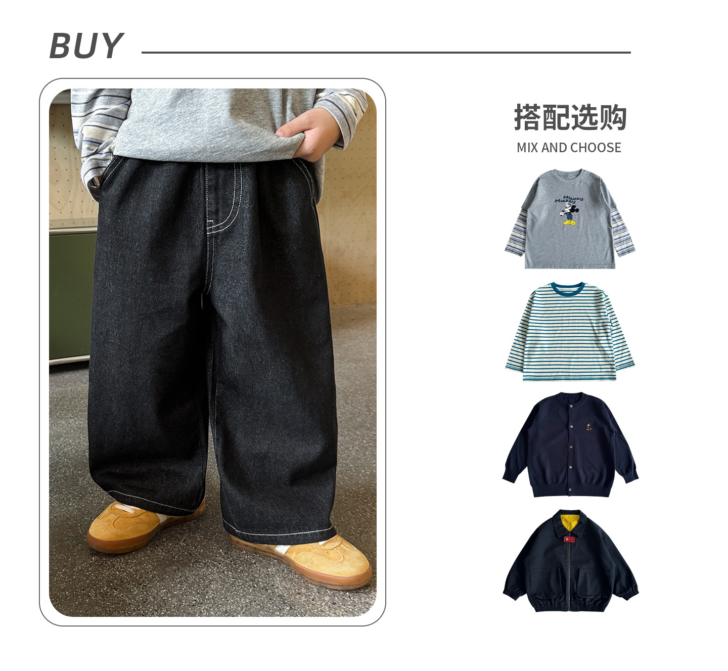 Tongku 2025 소년 가을 스타일 Huzhou Zhili 아동복 서양식 라벨 아동 바지 캐주얼 아동 청바지스토어 가기