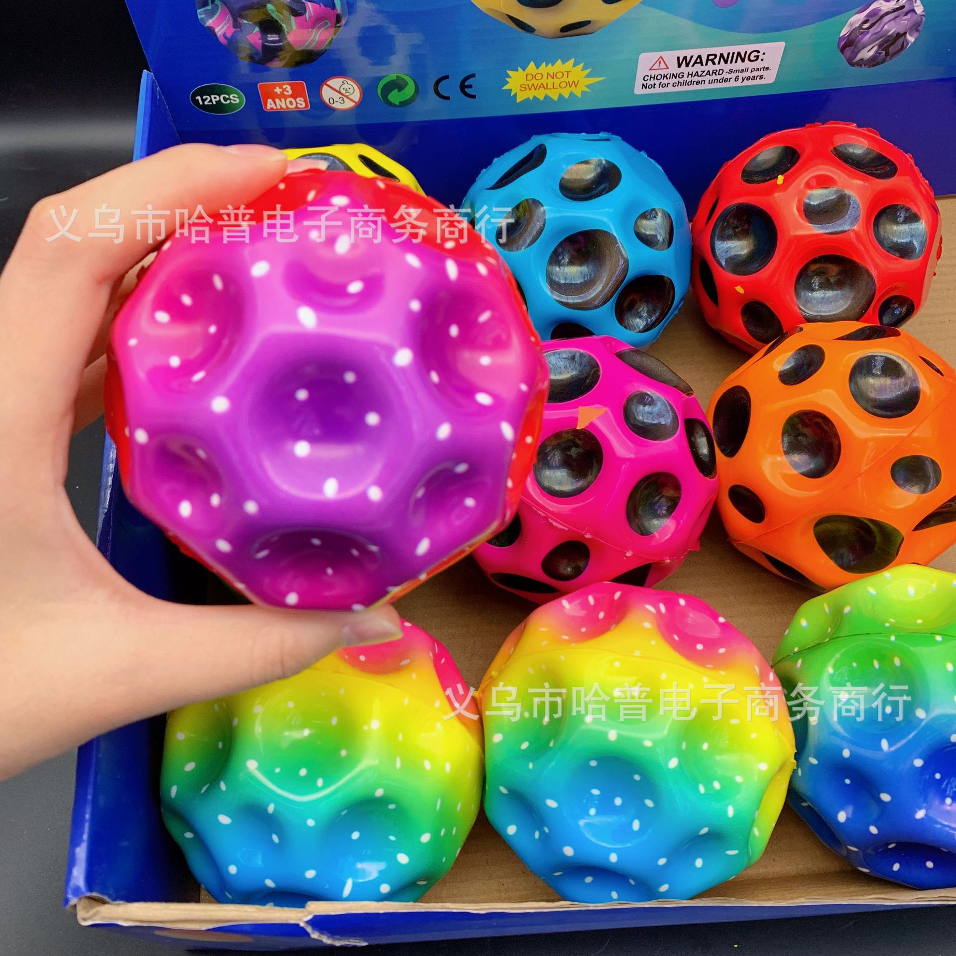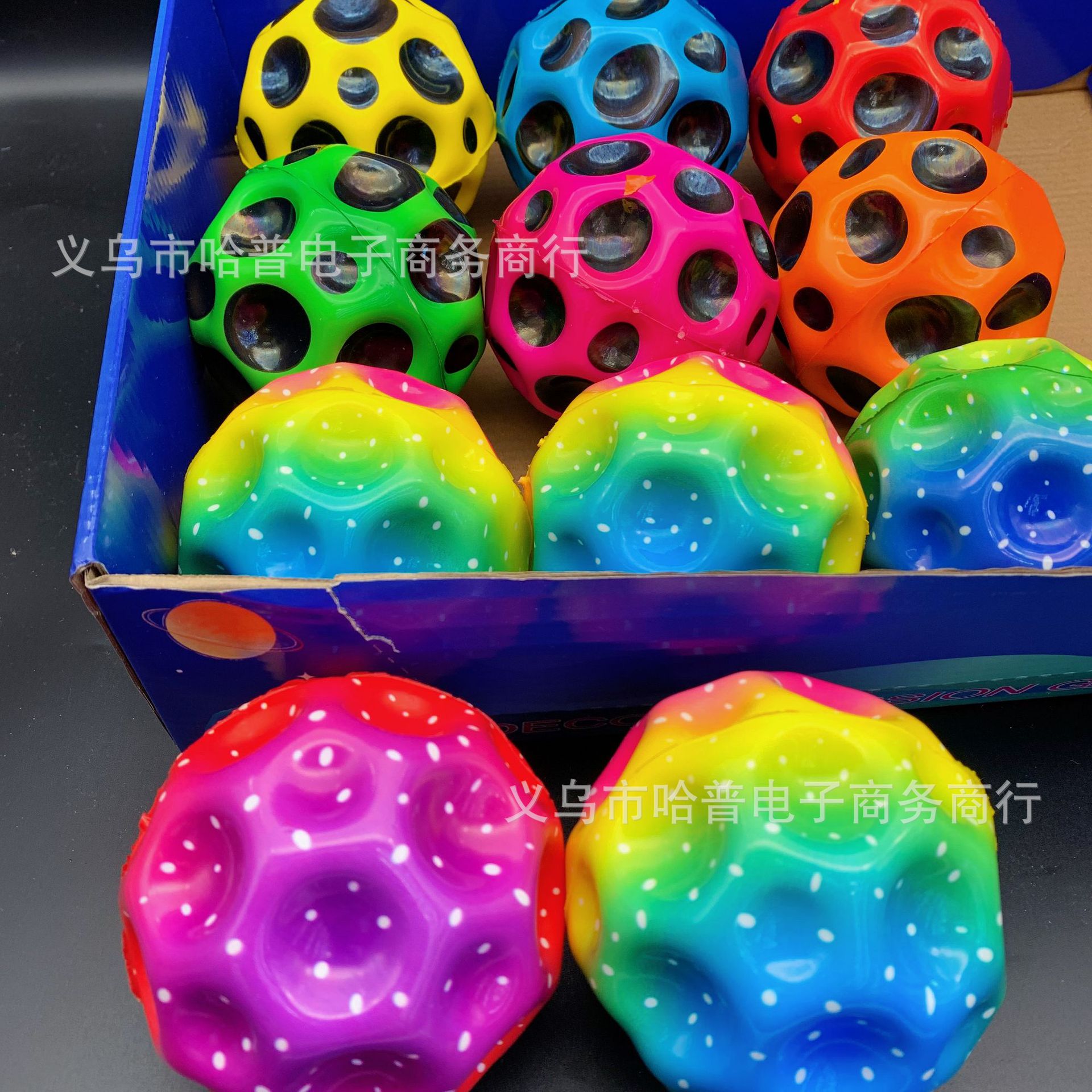 90mm 새로운 pu 다채로운 탄성 달 돌 구멍 공 어린이 부모-자식 대화 형 운동 반응력 높은 리바운드 공스토어 가기