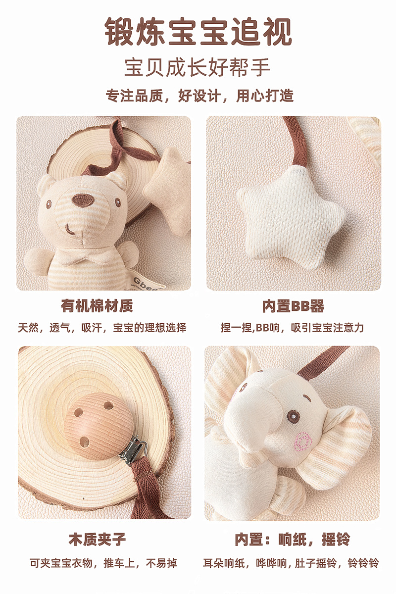 【适用场景】:推车上,安全座椅,床单,宝宝衣物,包包装饰等,随身携带出行,不易脱落,不易丢!