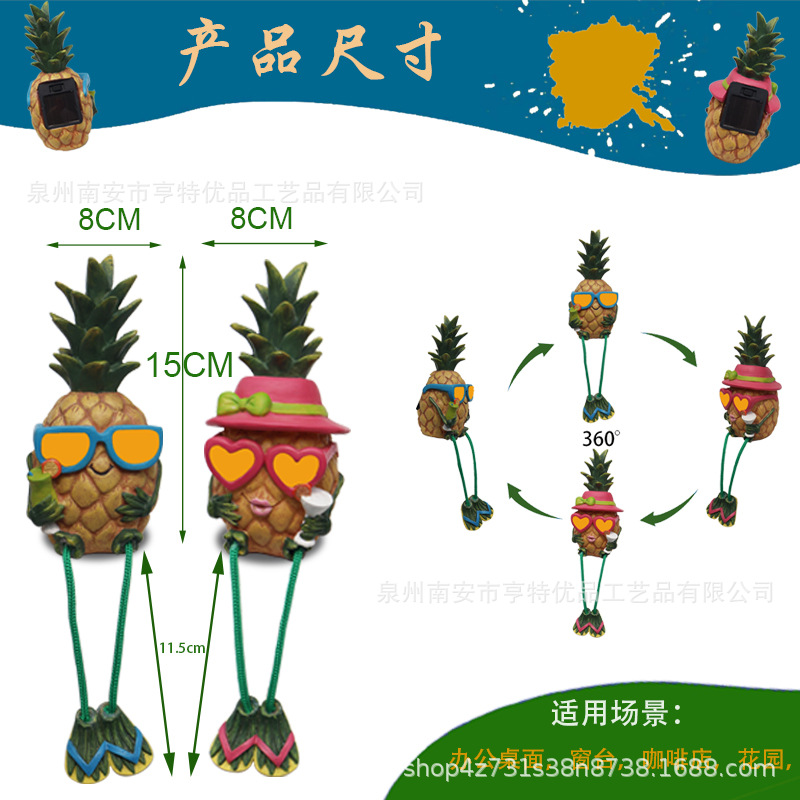 跨境亚马逊太阳能发光雕像庭院花园窗台工艺品装饰品树脂菠萝摆件스토어 가기