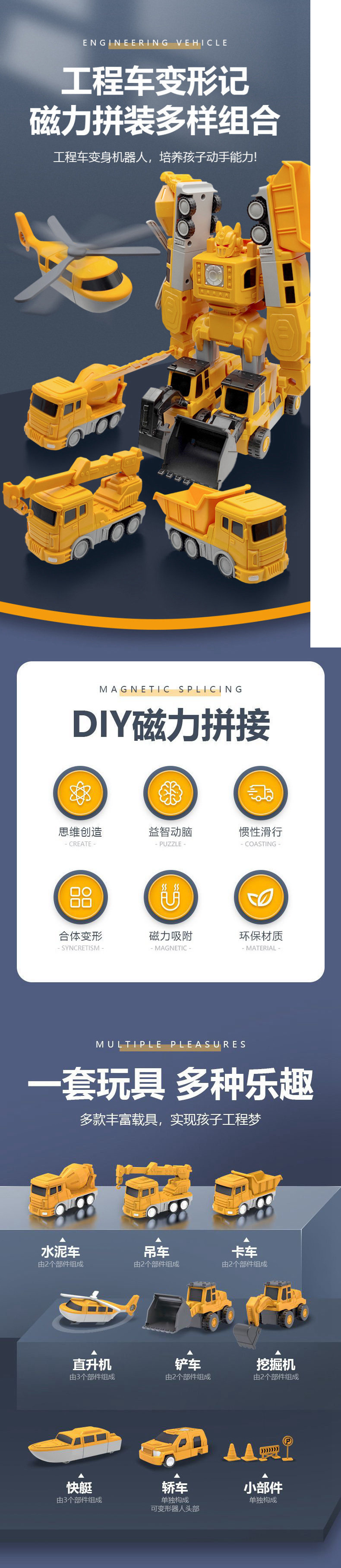 어린이를위한 자기 변형 접합 로봇 장난감 아기 생일 소년 빌딩 블록 조립 엔지니어링 차량스토어 가기