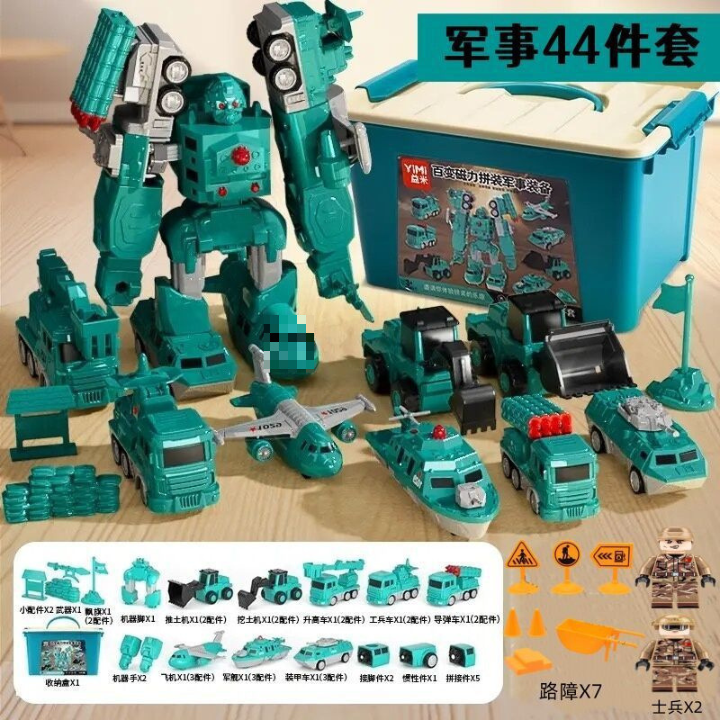 어린이를위한 자기 변형 접합 로봇 장난감 아기 생일 소년 빌딩 블록 조립 엔지니어링 차량