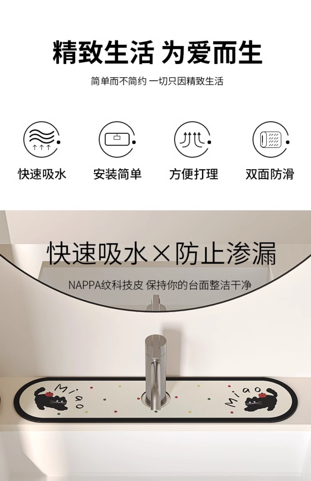 만화 주방 수도꼭지 배수 패드 욕실 세면대 흡수 패드 규조토 물기 제거 가능 세척 불필요 빠른 건조 매트