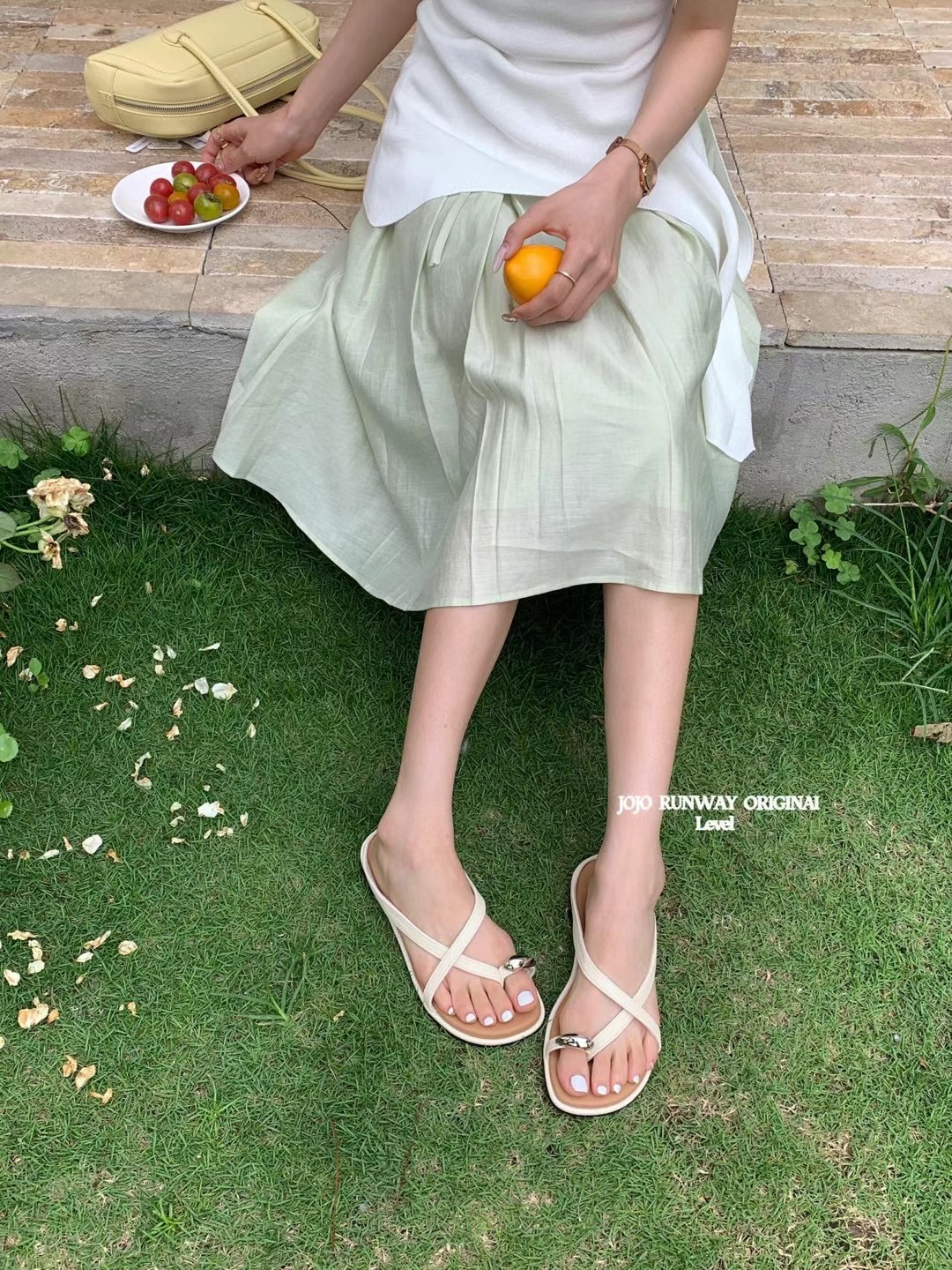 여름에 밖에서 신는 여성용 슬리퍼, 스커트와 함께 신는 새로운 프렌치 요정 스타일 샌들, 휴가용 비치 플랫 아름다운 샌들