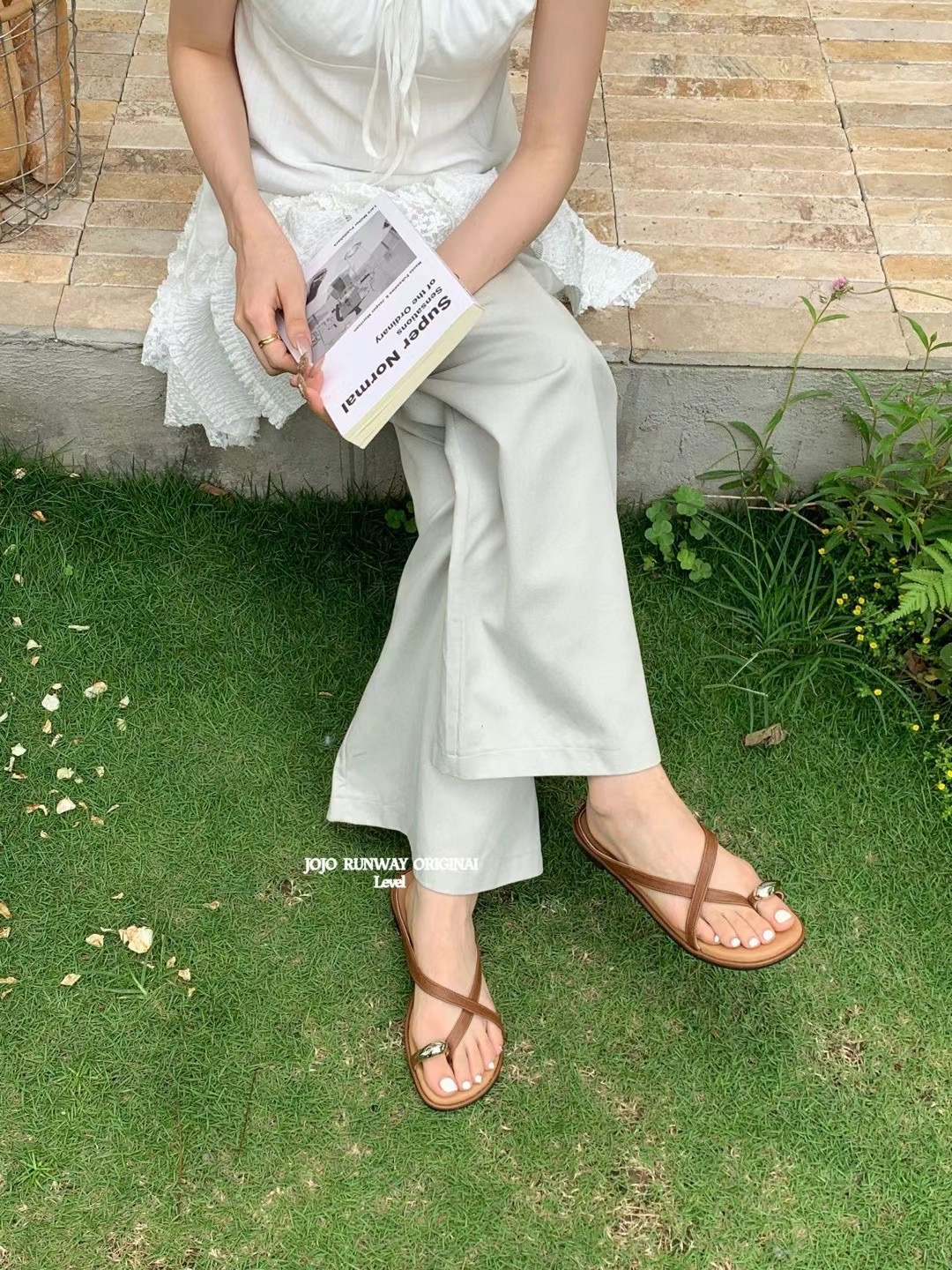 여름에 밖에서 신는 여성용 슬리퍼, 스커트와 함께 신는 새로운 프렌치 요정 스타일 샌들, 휴가용 비치 플랫 아름다운 샌들스토어 가기