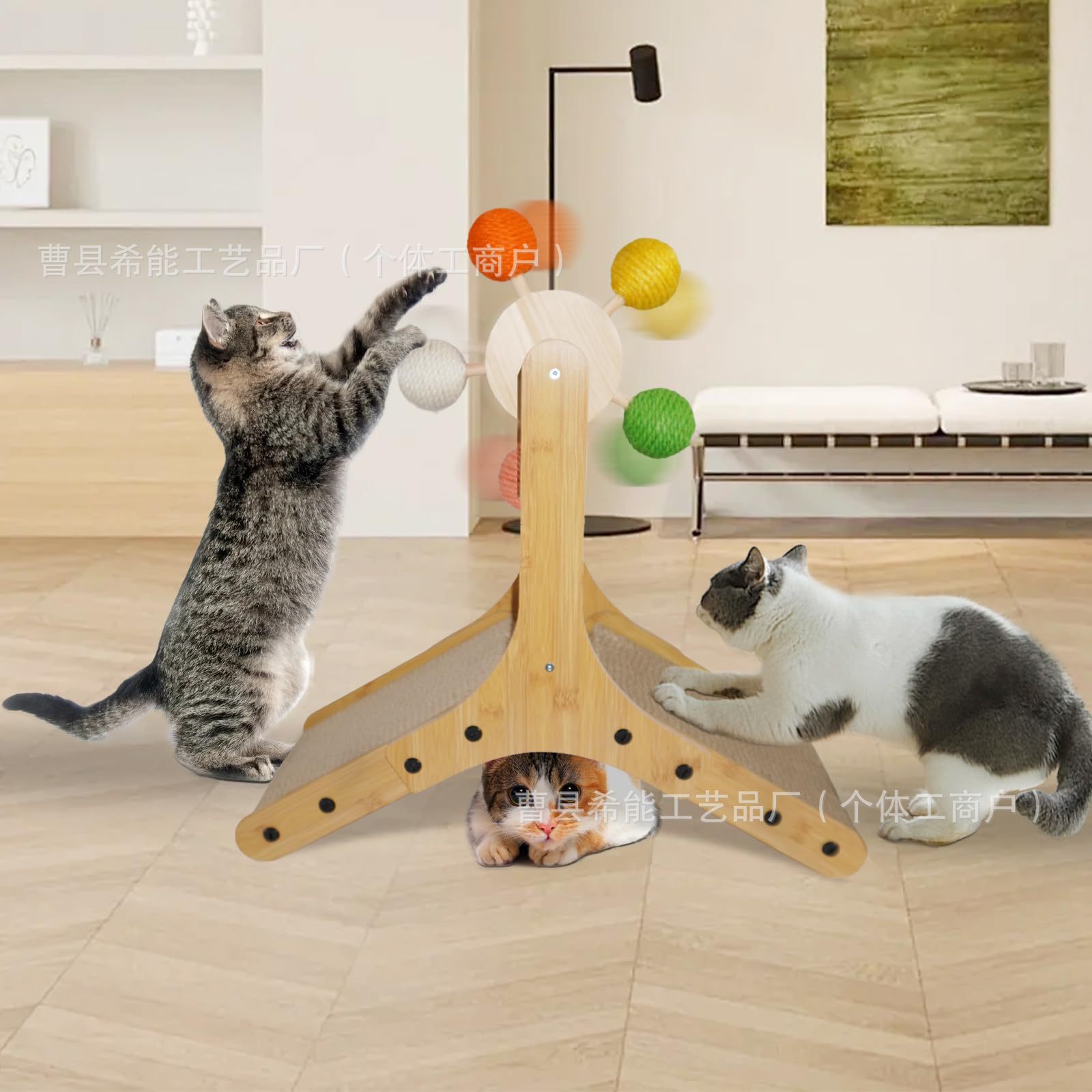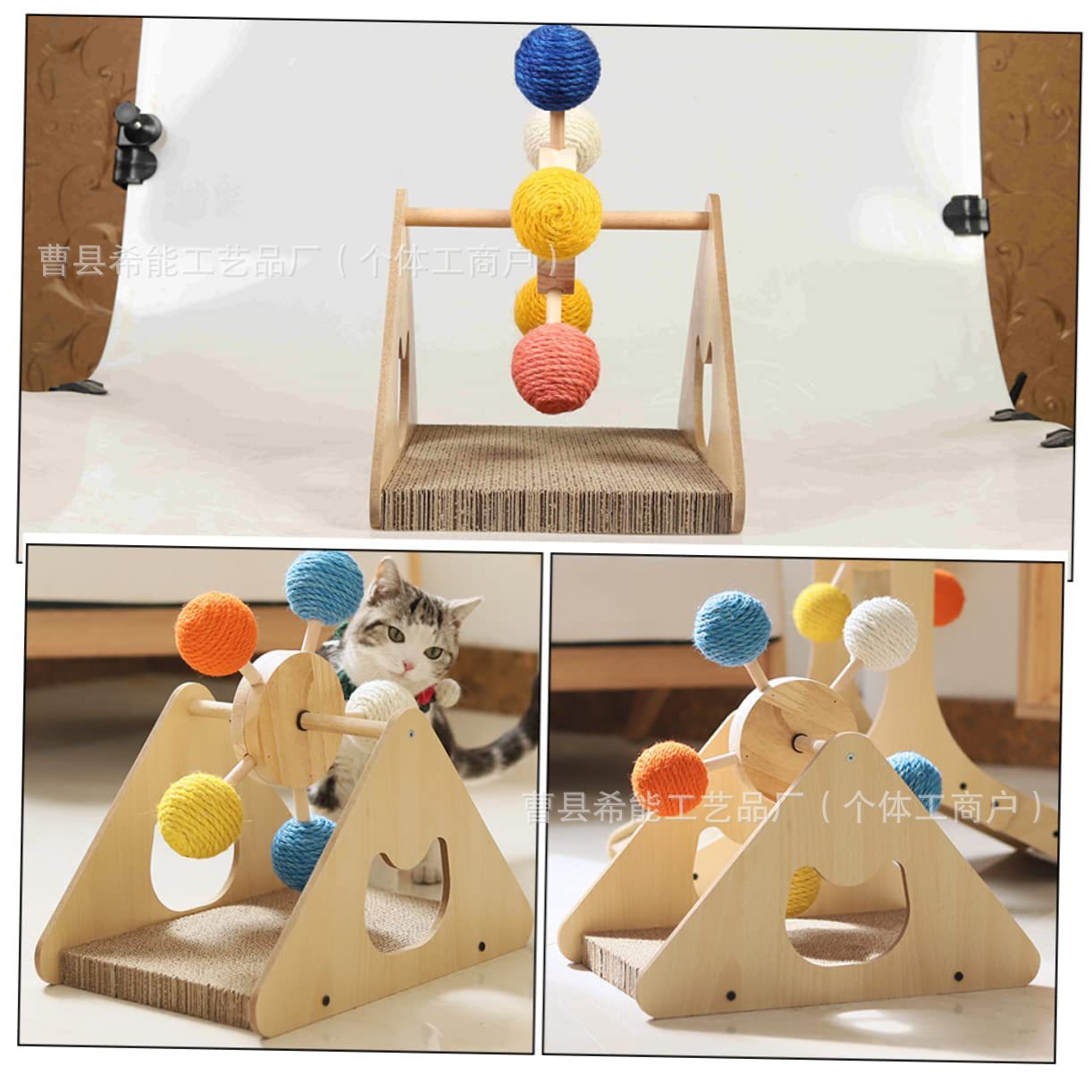 나무 고양이 관람차 장난감, 고양이 스크래치 포스트, 고양이 발톱 연삭기, 가정용 애완동물 장난감, 고양이 자기 즐거움 장난감 랙