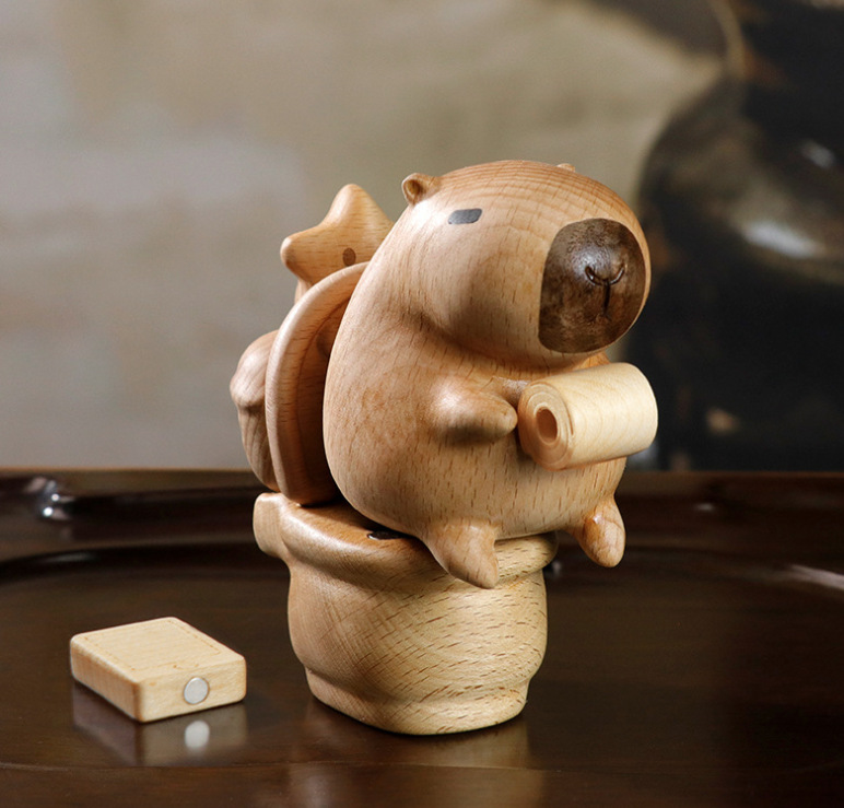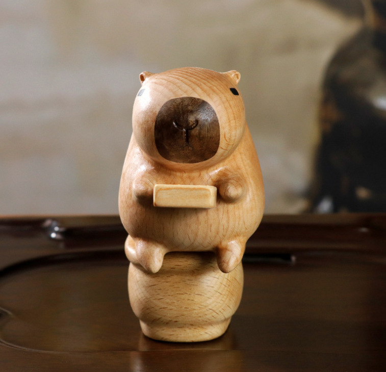 너도밤나무 카피바라 변기, 나무 조각 손잡이, 가정용 가구, 남성과 여성 친구를 위한 선물, 자석 데스크탑 디스플레이