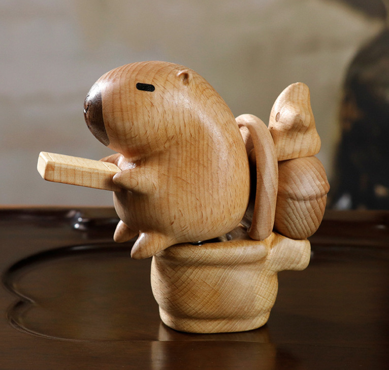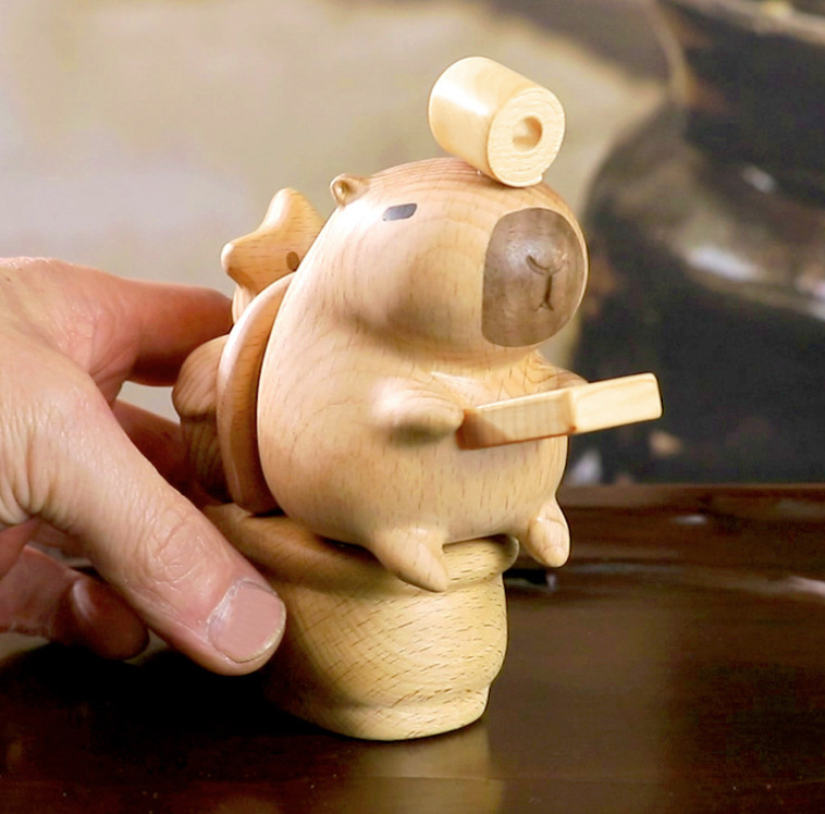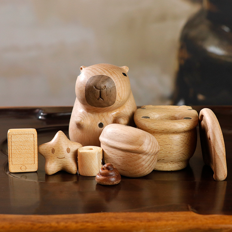 너도밤나무 카피바라 변기, 나무 조각 손잡이, 가정용 가구, 남성과 여성 친구를 위한 선물, 자석 데스크탑 디스플레이스토어 가기