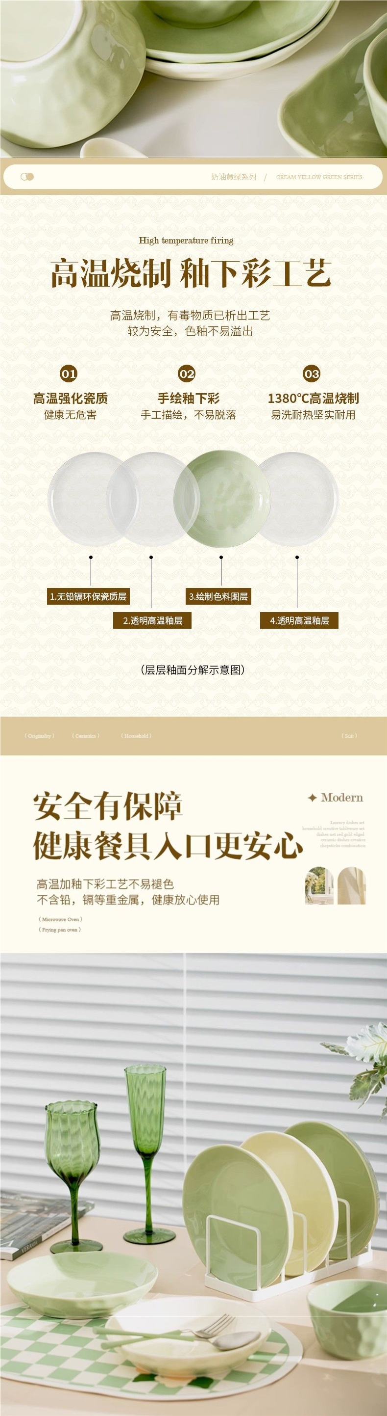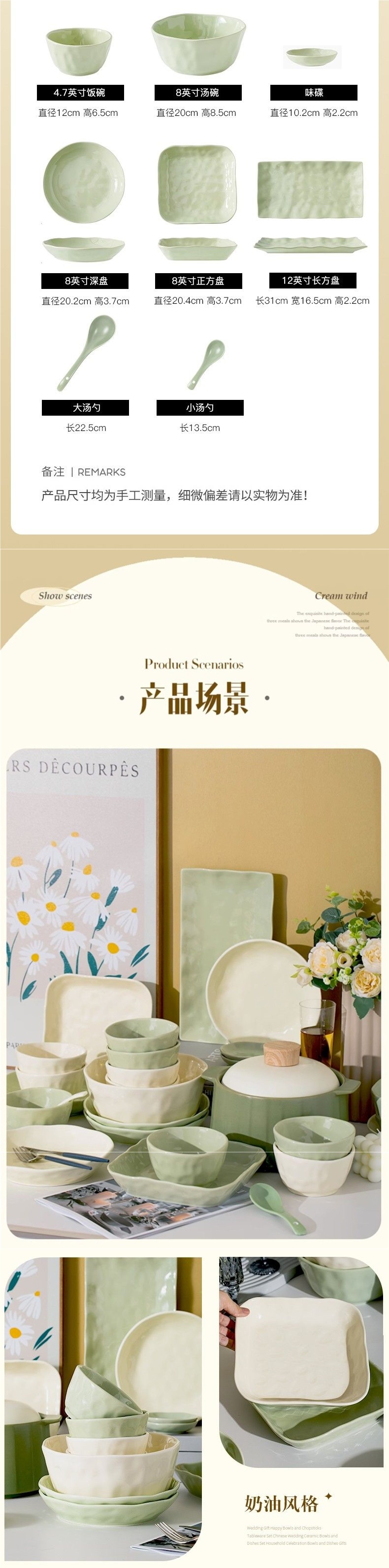 가정용 크림 스타일 그릇 2024 새로운 넓은 입 두꺼운 화상 방지 돌 패턴 식기 분위기 그릇과 접시 세트