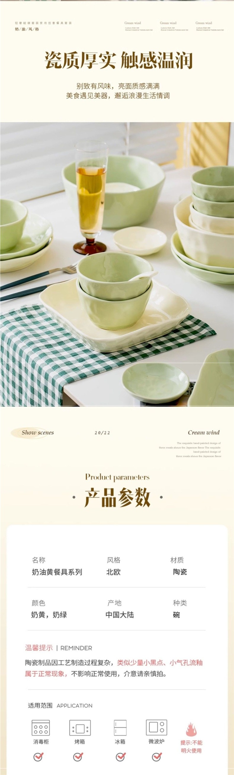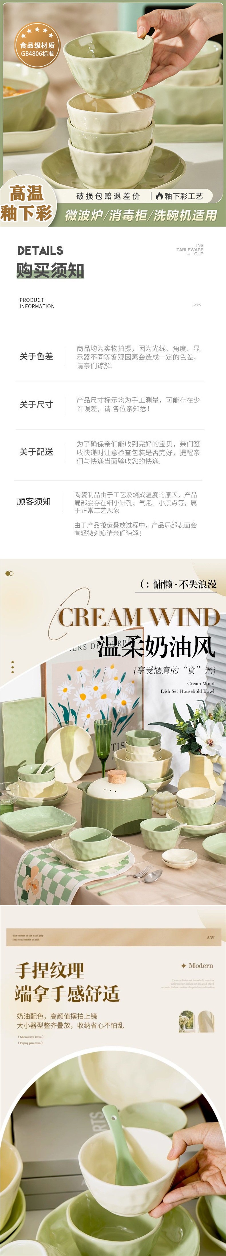 가정용 크림 스타일 그릇 2024 새로운 넓은 입 두꺼운 화상 방지 돌 패턴 식기 분위기 그릇과 접시 세트스토어 가기