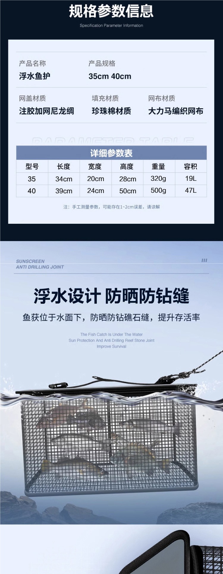 루야 플로팅 피쉬 가드, 바다 낚시 바구니, 바다 낚시, 바위 낚시 가드, 빠른 건조, 휴대용 나일론 라인, 보트 낚시 가드