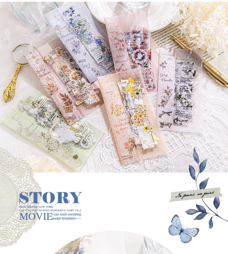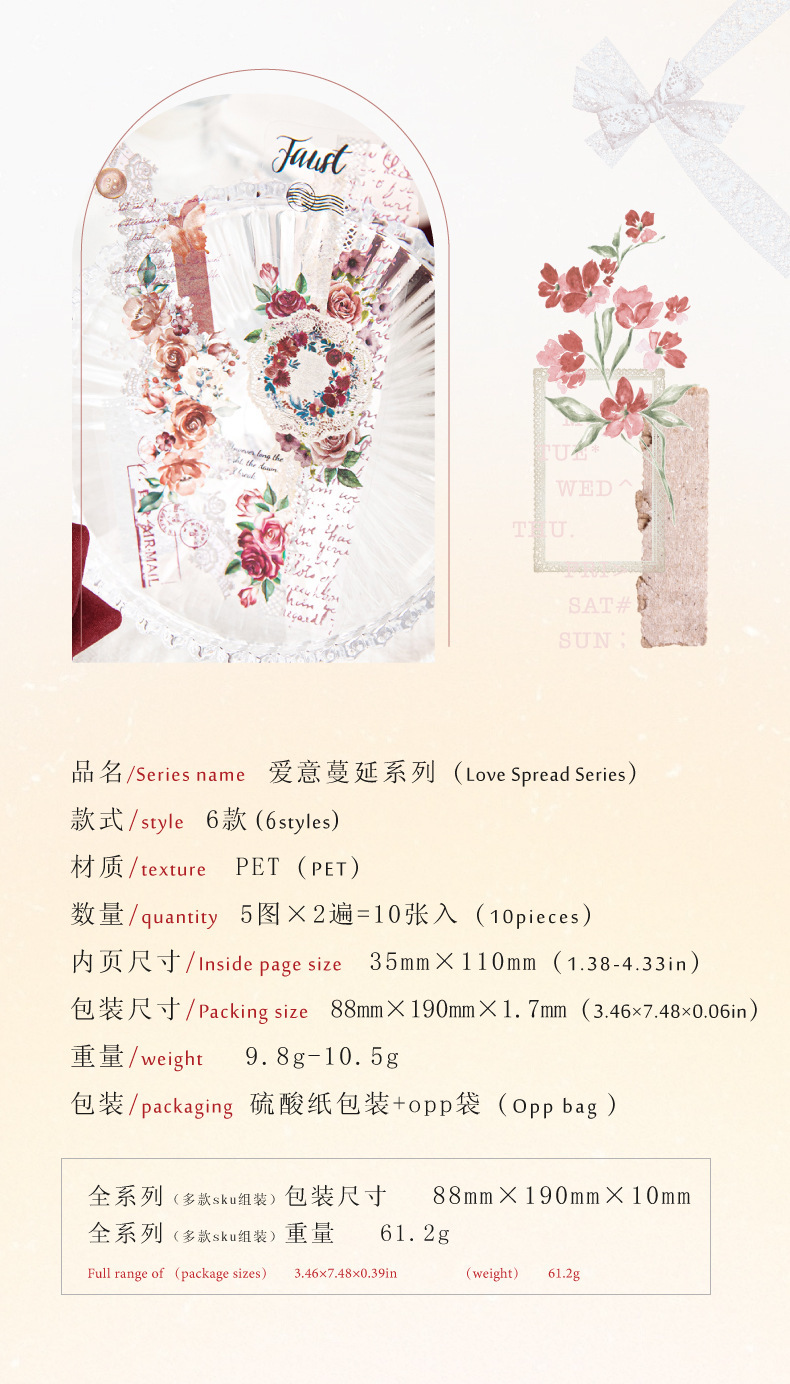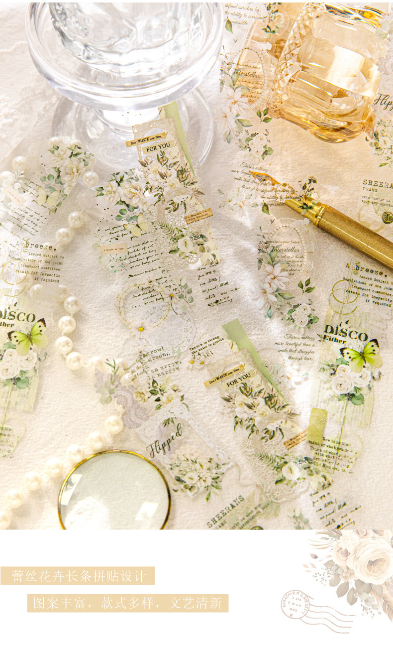 Sugar Poetry Love Spreading 시리즈 PET 흰색 잉크 스트립 스티커 팩 핸드북 소재 장식 콜라주 베이스 스티커 6가지 스타일스토어 가기
