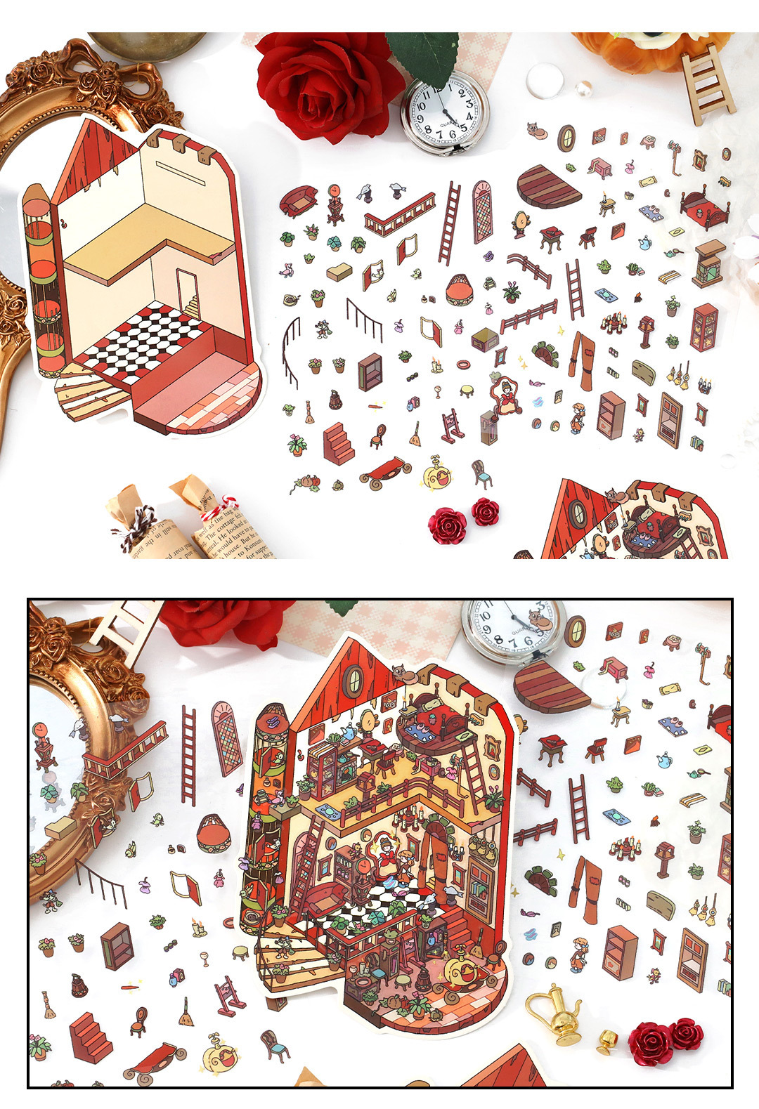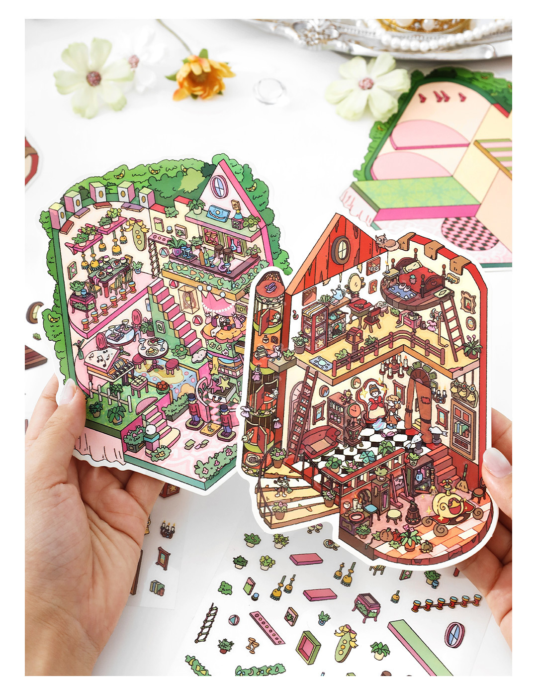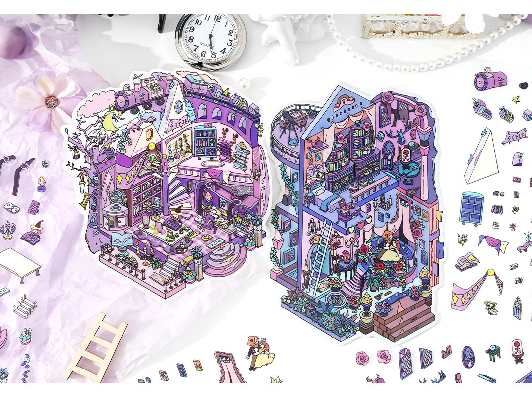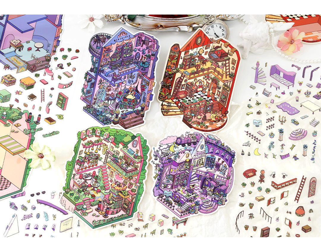 Infeel.MePET2.5D 나인 총 조경 스티커 내 오두막 시리즈 만화 학생 핸드북 장식 스티커