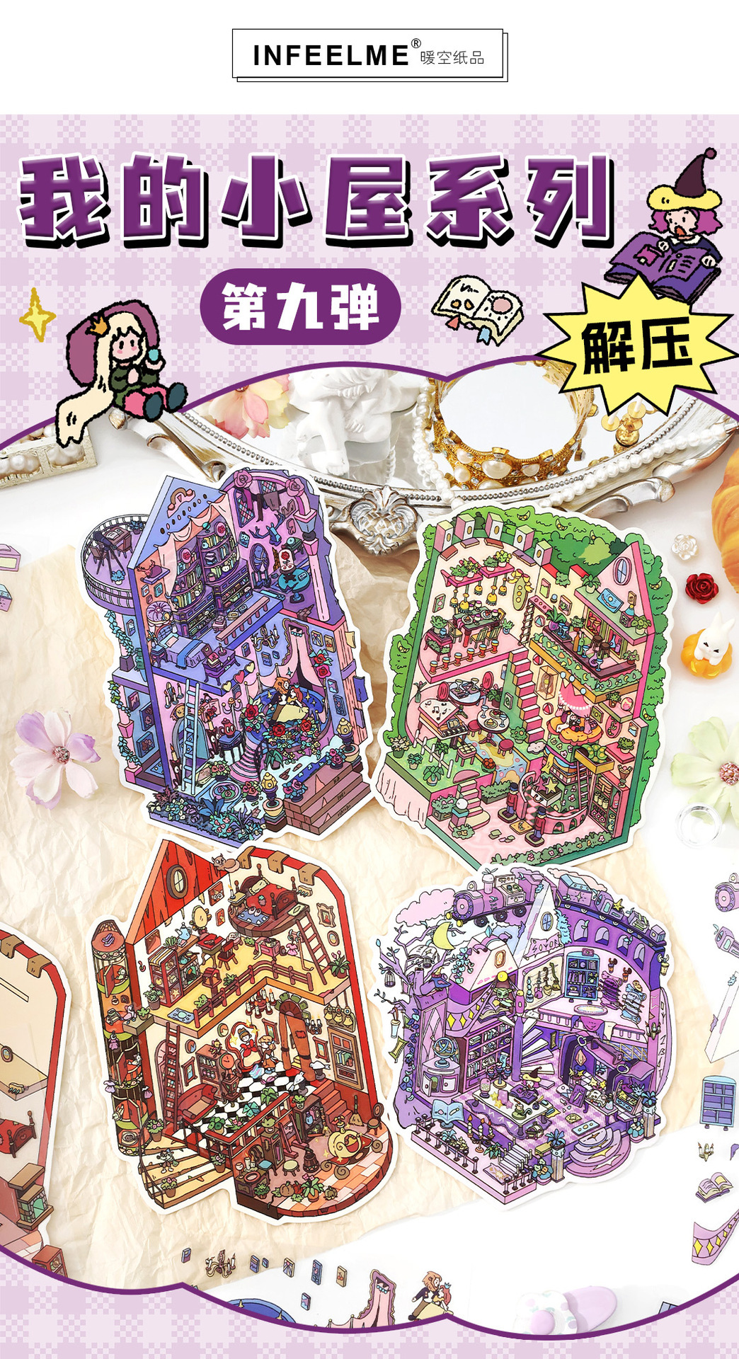 Infeel.MePET2.5D 나인 총 조경 스티커 내 오두막 시리즈 만화 학생 핸드북 장식 스티커스토어 가기