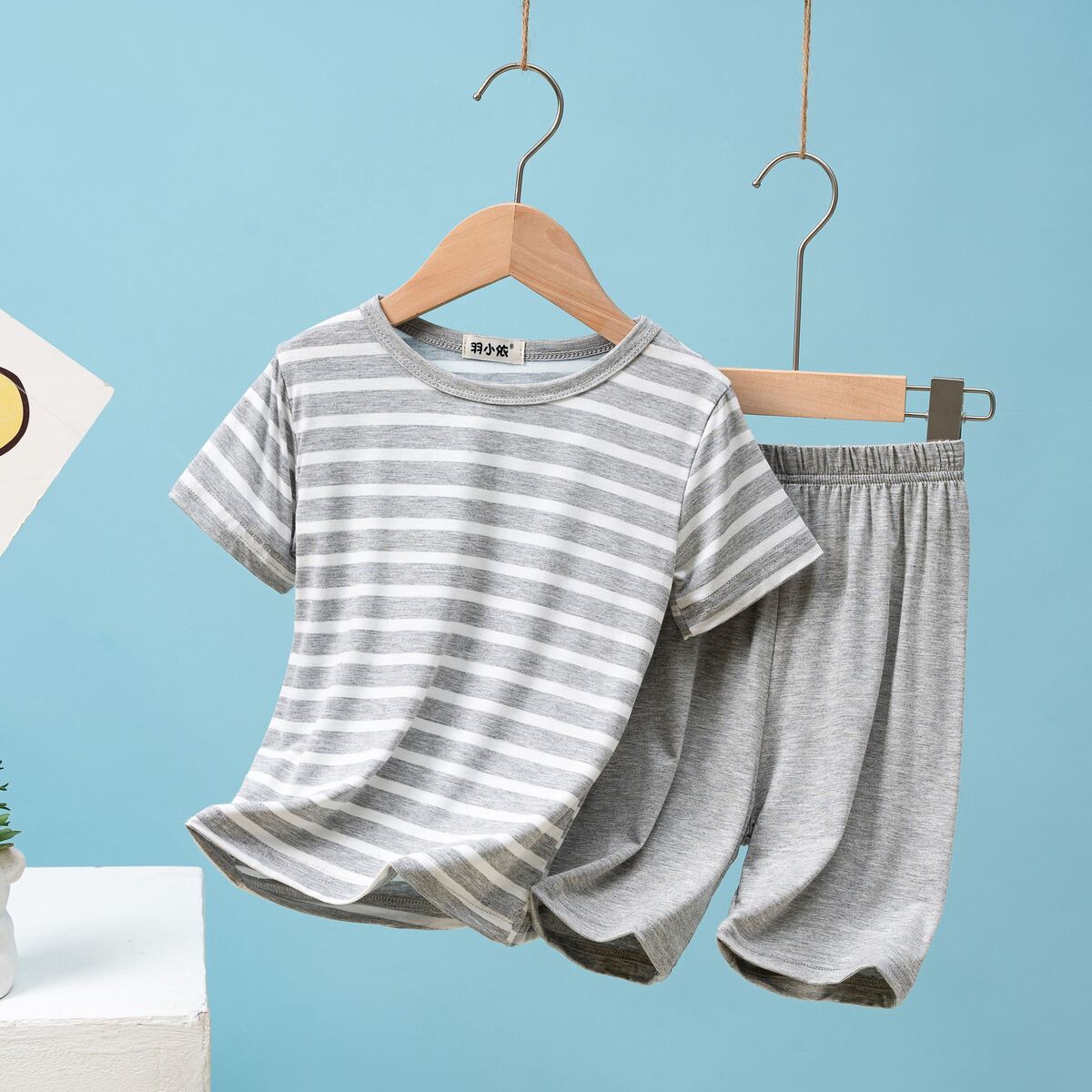 아동용 모달 셔츠 반바지 정장 얇은 여름 소년 잠옷 느슨한 소녀 베이비 반팔 에어컨 홈스토어 가기
