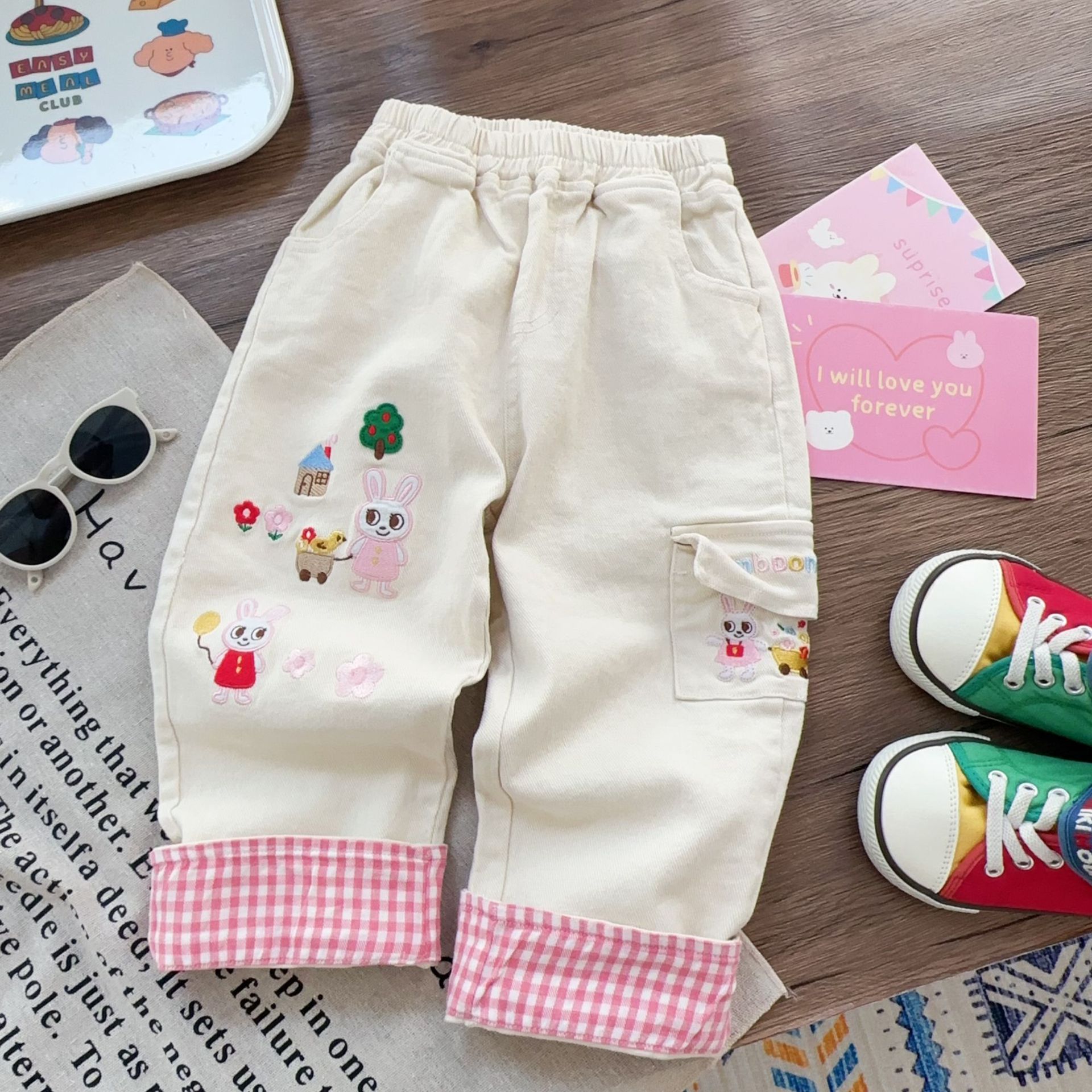 아동용 바지 2025년 봄 가을 신상 남아 바지 만화 자수 여아 바지 아동복 도매