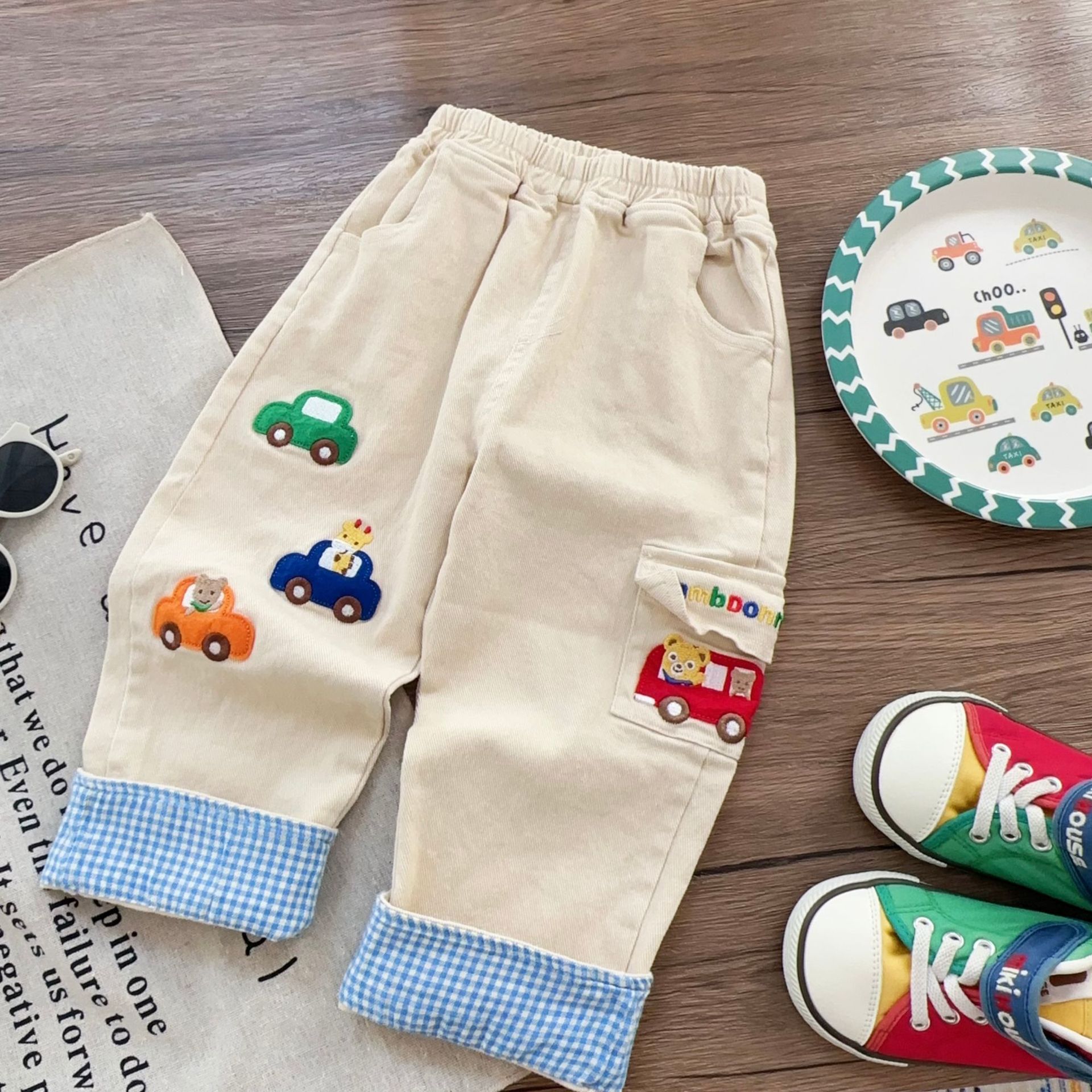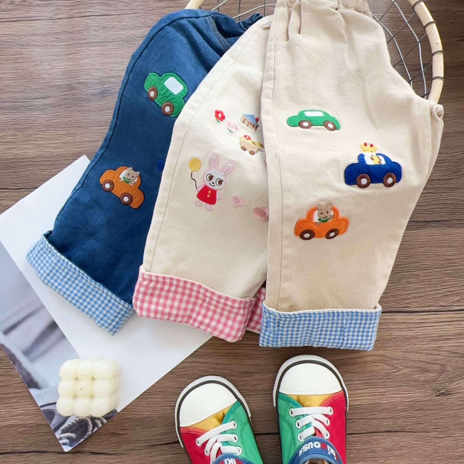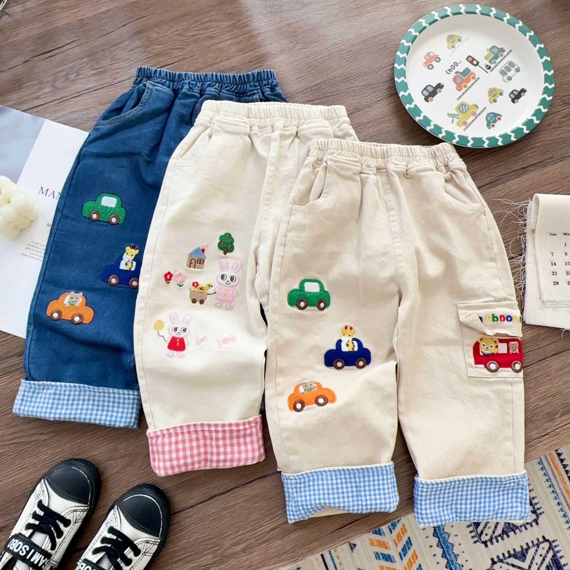 2025년 봄 신상 아동 바지, 남아 바지 만화 자수, 여아 바지, 아동복, 도매스토어 가기