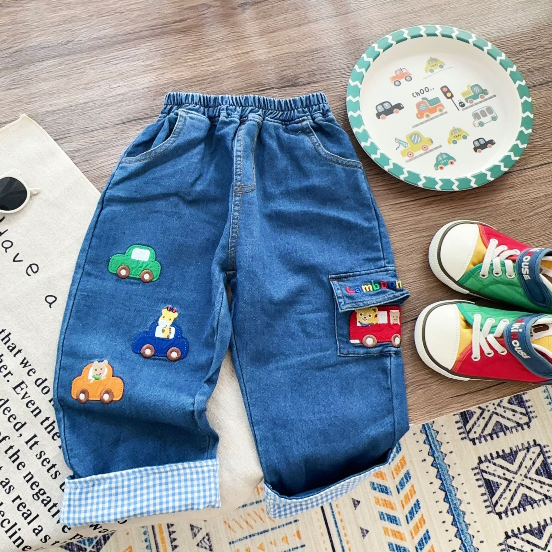 아동용 바지 2025년 봄 가을 신상 남아 바지 만화 자수 여아 바지 아동복 도매스토어 가기