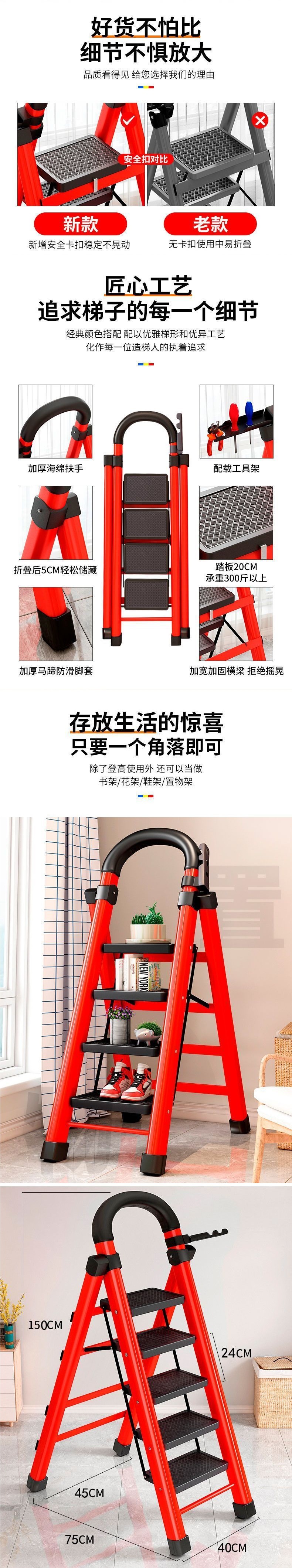 사다리 가정용 접이식 사다리 두꺼운 탄소강 헤링본 사다리 4단 5단 이동식 계단 다기능 실내스토어 가기