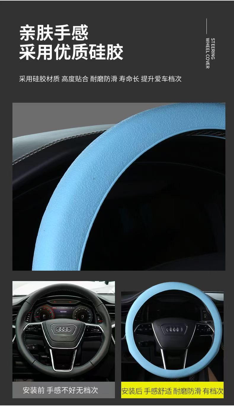 남성과 여성을 위한 여름 패션 내마모성 미끄럼 방지 핸들 커버, 사계절 범용, 초박형 소프트 실리콘 자동차 핸들 커버