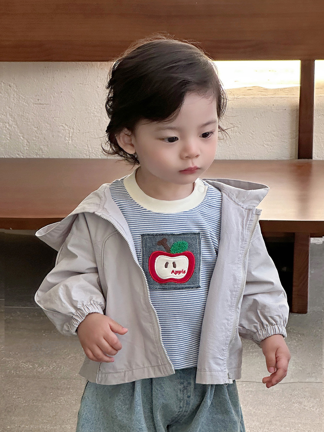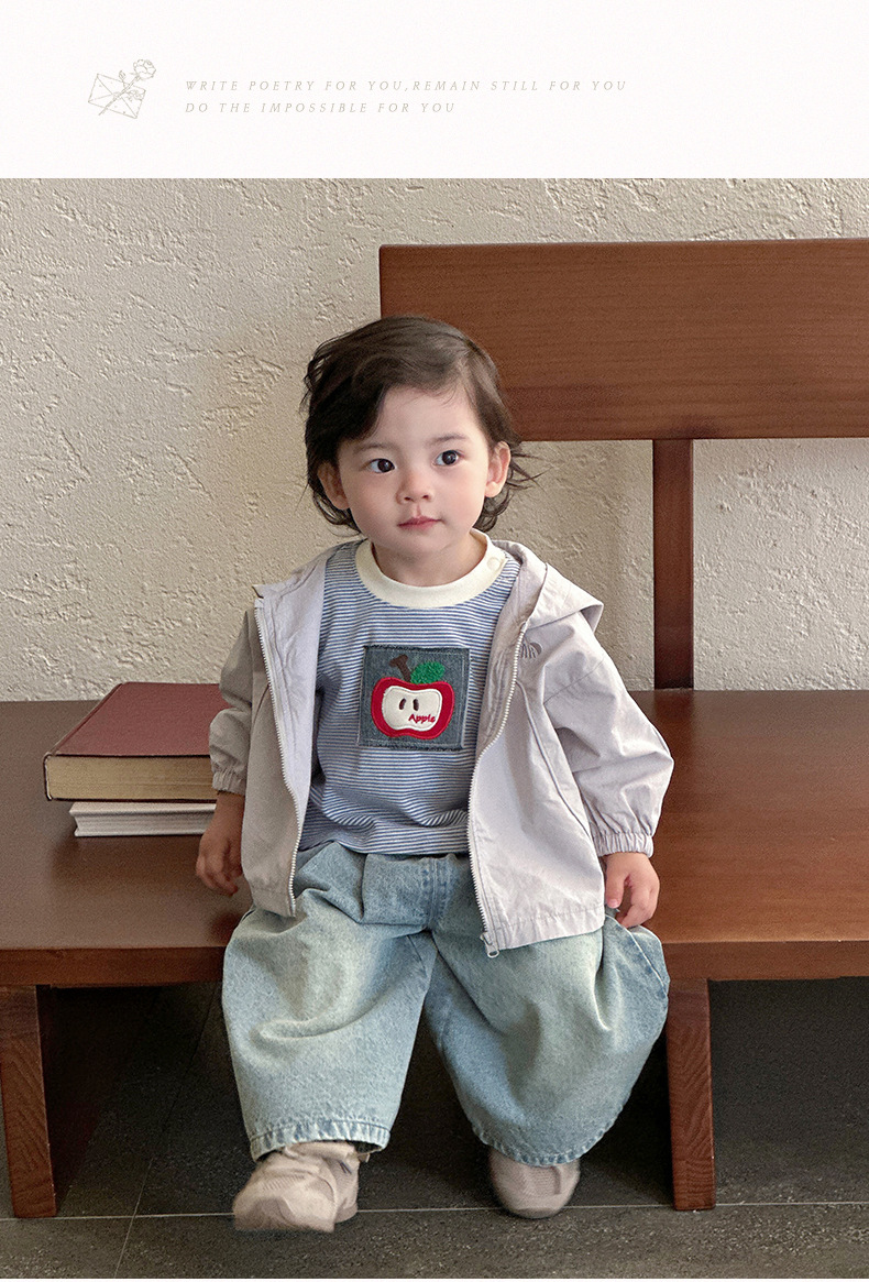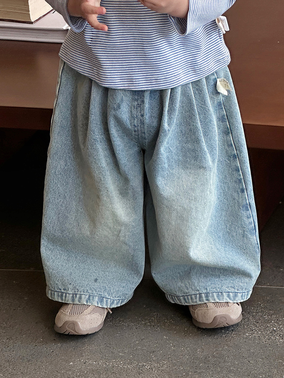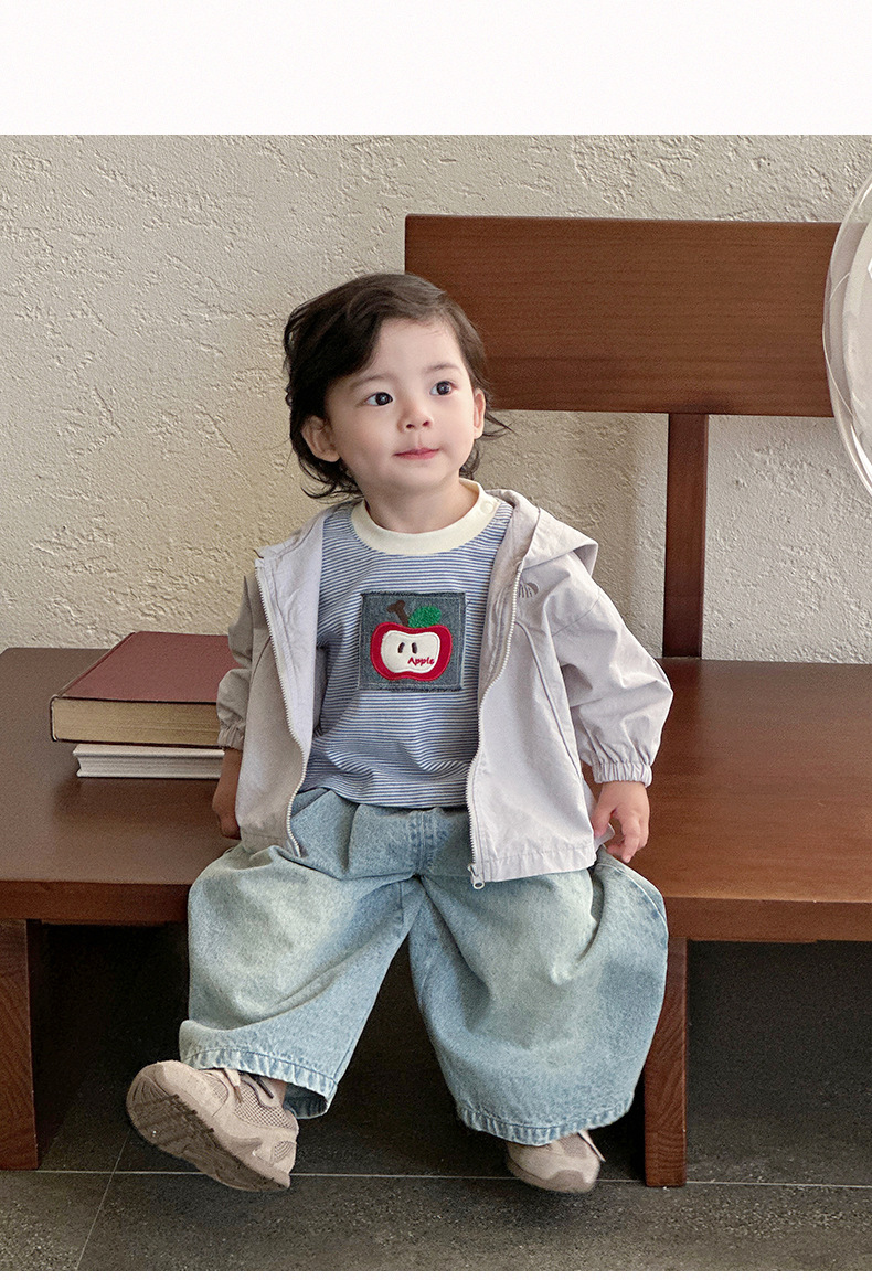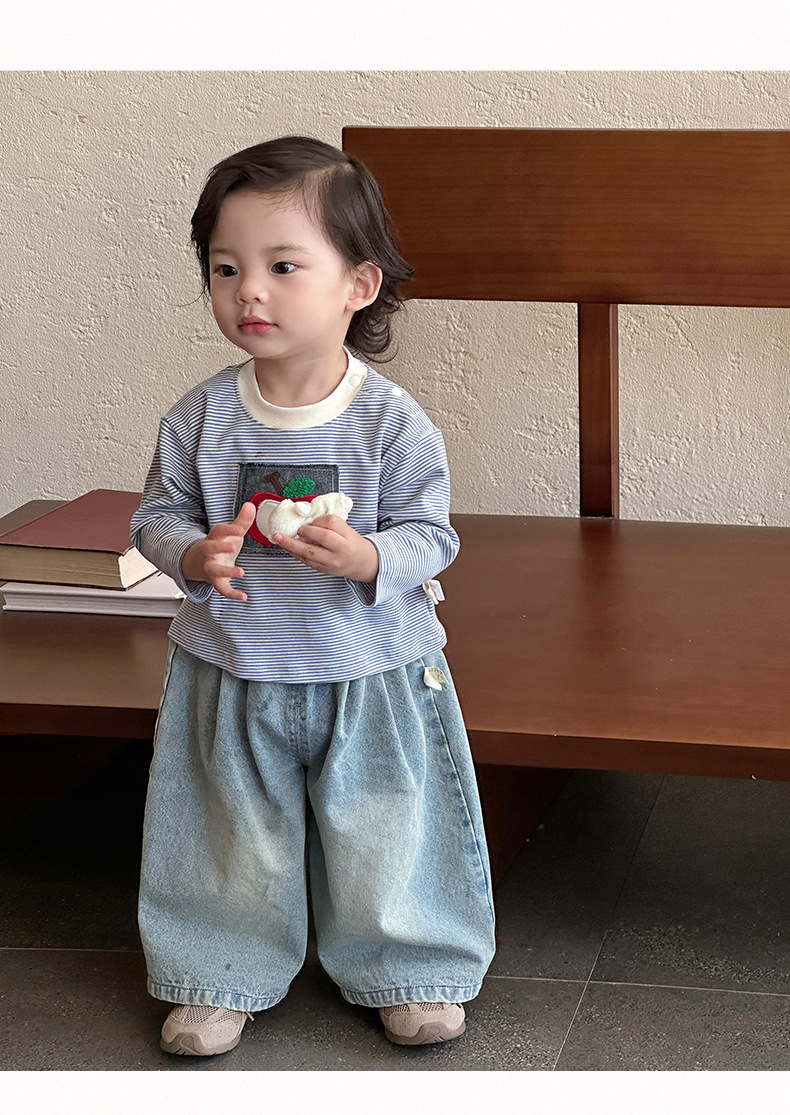 2025년 신제품 남아 봄, 가을 정장 한국식 줄무늬 바닥 셔츠 데님 와이드 팬츠 서양식 외출복스토어 가기