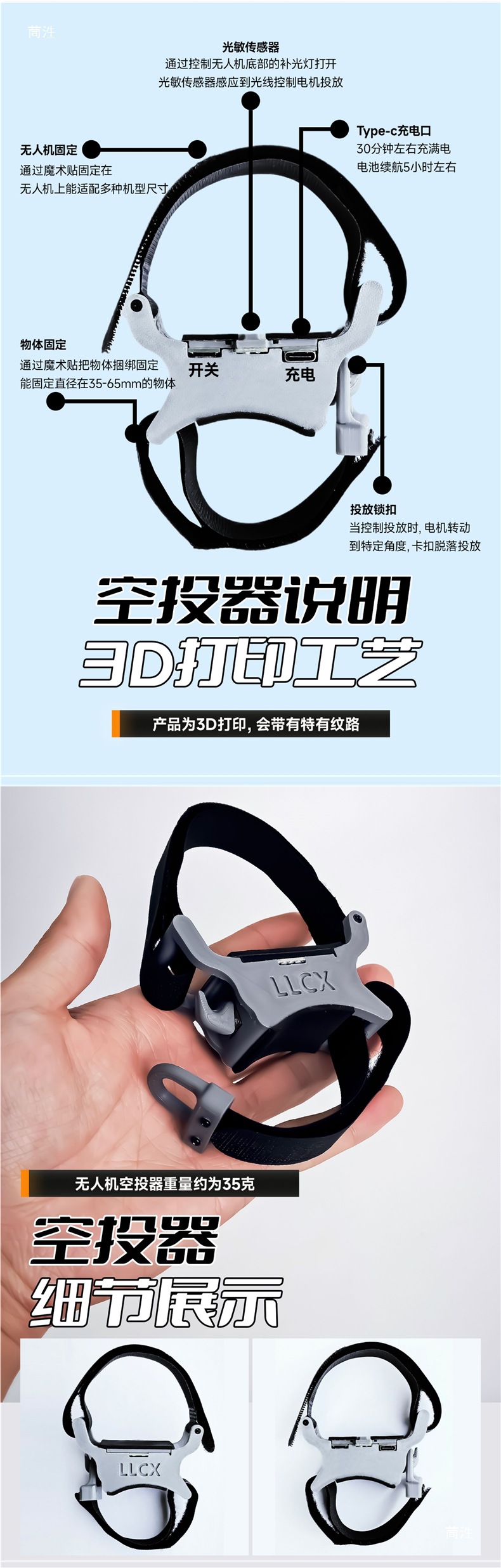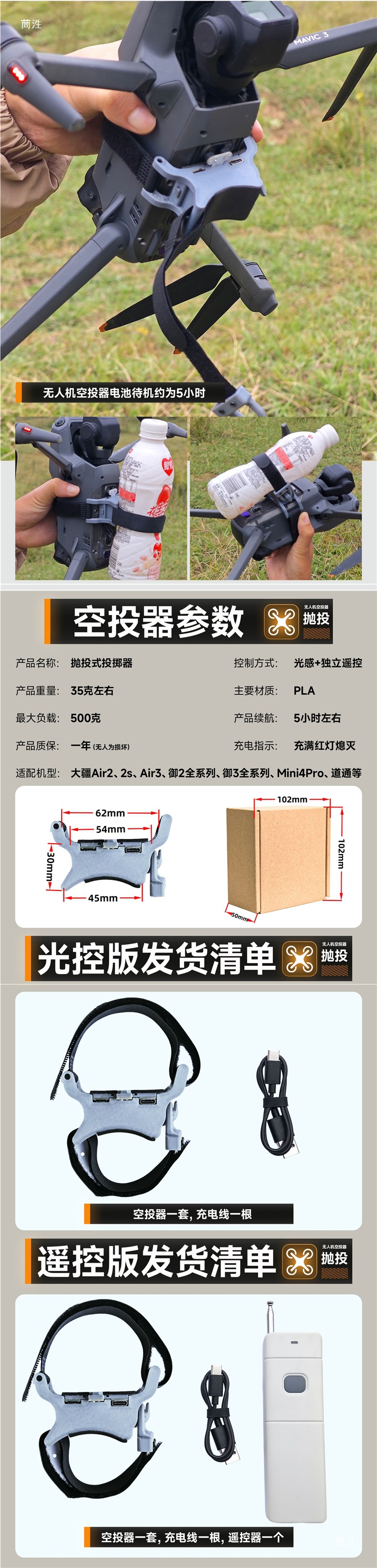 범용 드론 투척형 에어드롭 폭탄 투척기 무한 원격 제어 거리 투척기 구조 및 물자 공급
